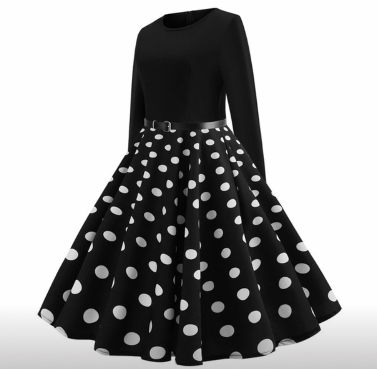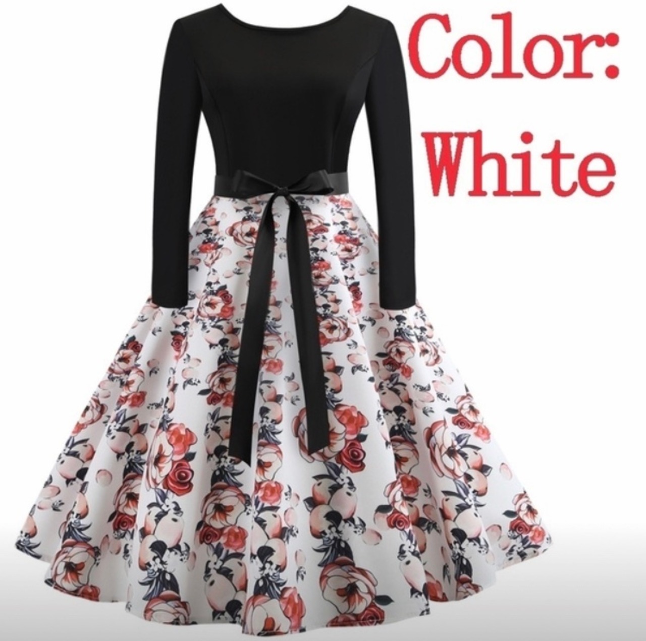 【即納】♡50'Sスタイル レトロな長袖フレアワンピース♡5カラー