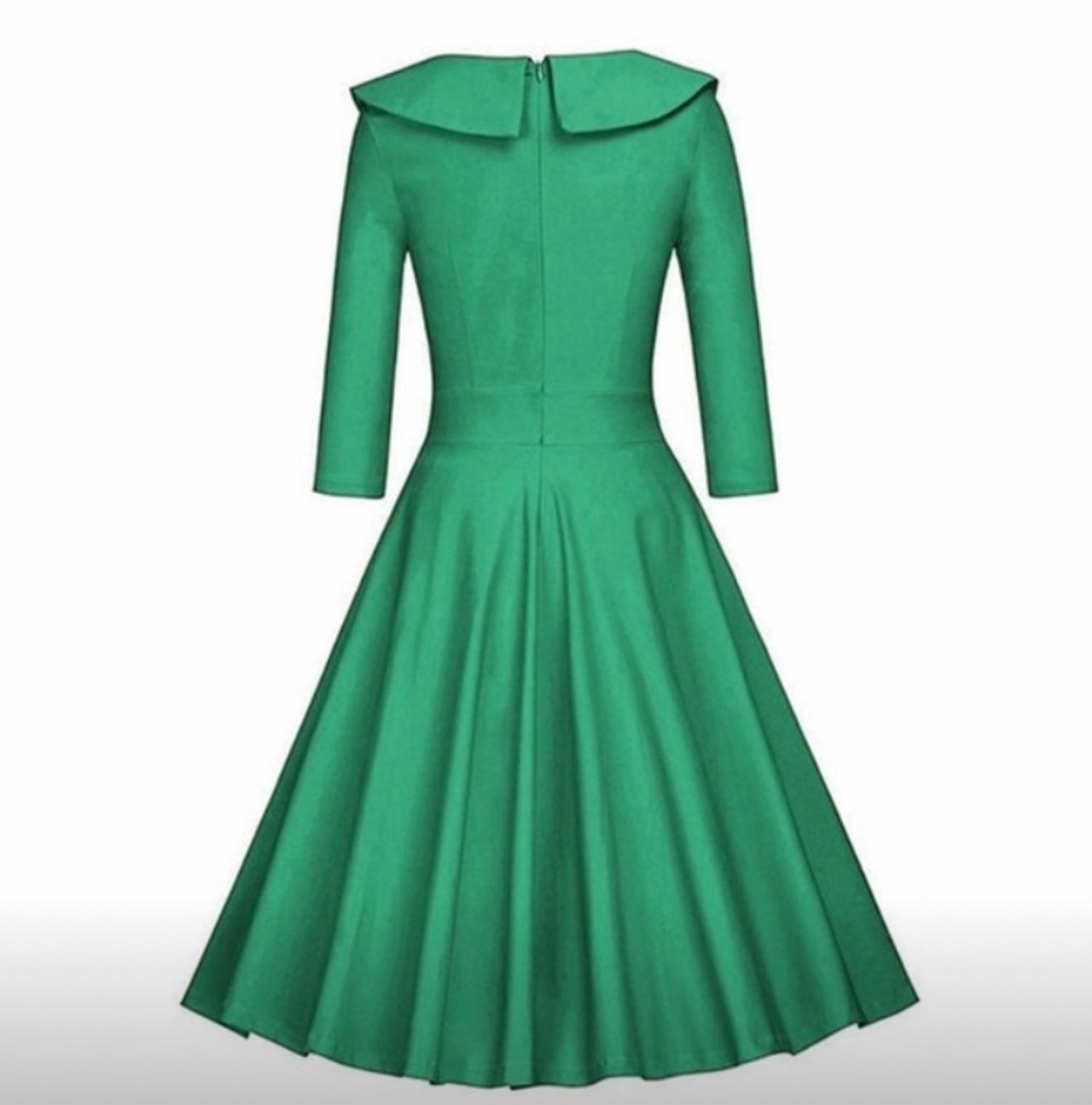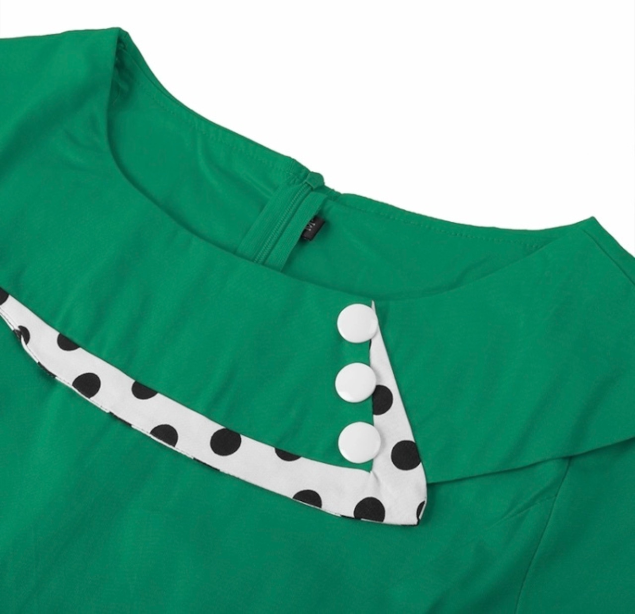 【即納】♡50'Sスタイル ロカビリー ミディワンピ オードリーヘップバーン レトロな衿×ドットデザイン フレアワンピース♡