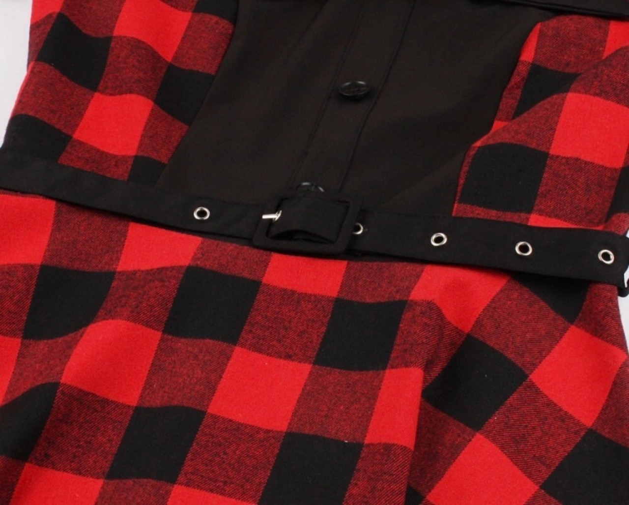 【即納】♡レッドタータンチェック 50'S 60'Sスタイル ベルト付きフレアワンピース♡