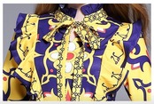 フリルのスタンドカラーの下のおリボンと一番上のボタンの間が開いているデザインがとても素敵です♡