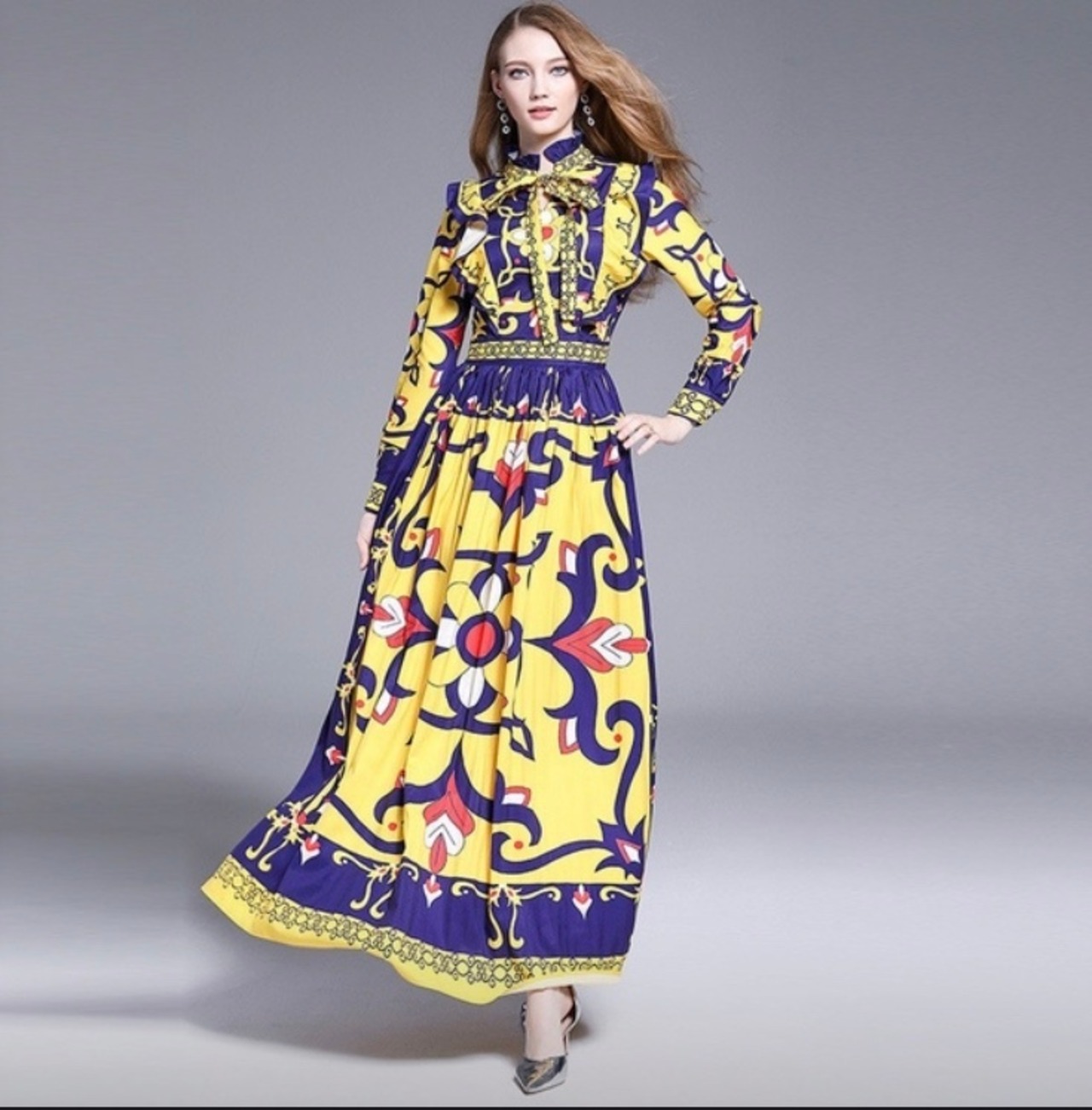 送料無料【即納】♡マキシマムドレス 大きいサイズ在り♡ゴージャス フリル襟 リボン ロング丈 プリーツ ワンピース♡セレブ イエロー ネイビー ゴージャス フリルスタンドカラー襟 セクシーシャツワンピース