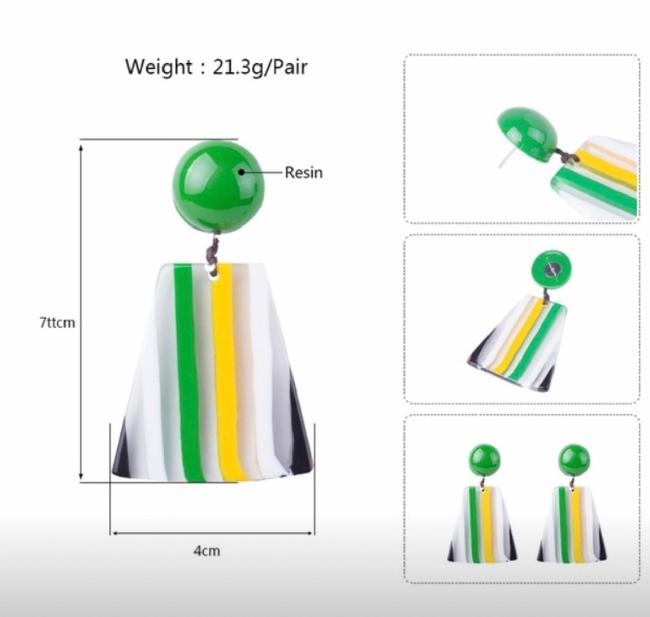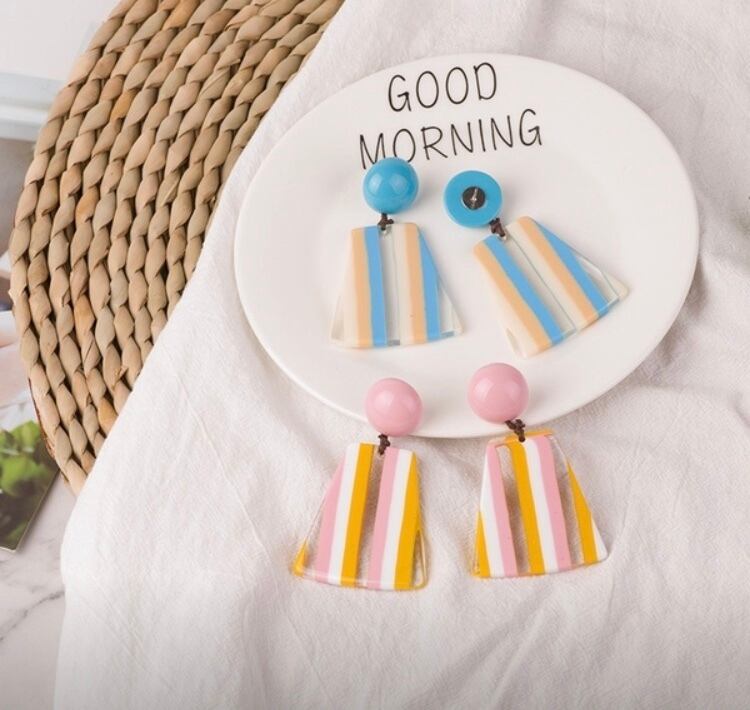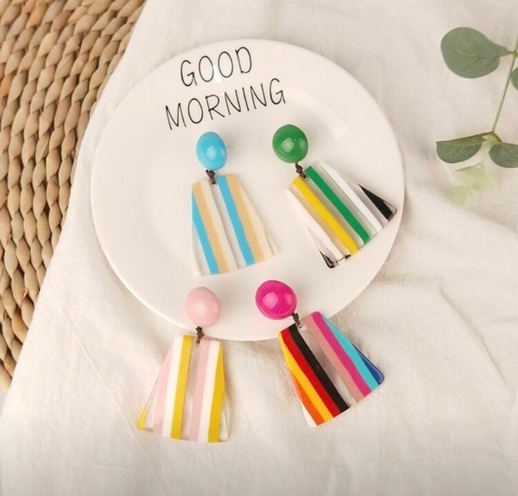 【即納】♡4カラー レトロ モダンマルチカラーピアス♡グリーン ピンク ブルー イエロー ベージュ ブラックホワイト レッド