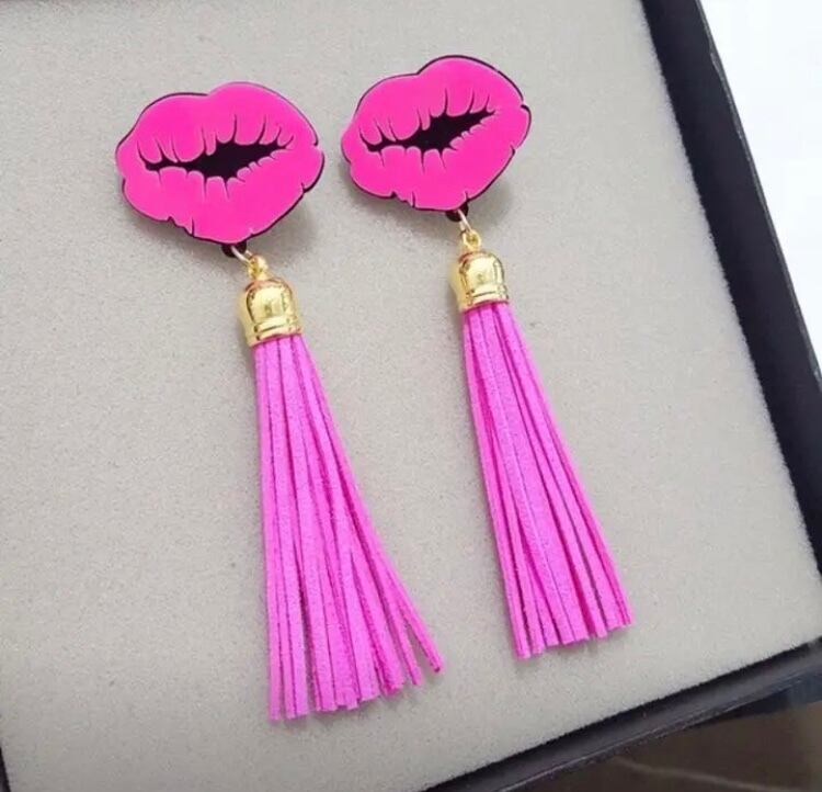生産終了【即納】♡唇 リップ フリンジピアス ピンク ブルー♡ビビット キュート 揺れ 個性 可愛い ゴールド 青