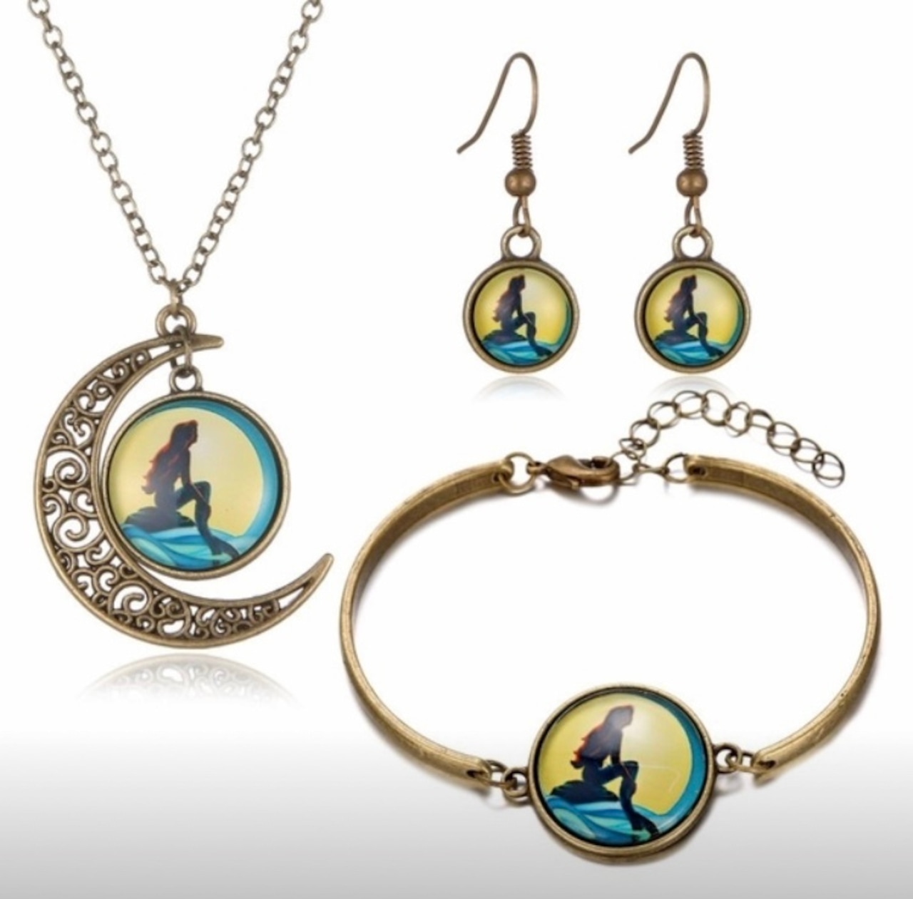 【即納】在庫残り1点♡人魚姫 お洒落 アンティークゴールド 4セット ピアス ペンダントネックレス ブレスレット♡アクセサリー 人魚 イベント ハロウィン おしゃれ 可愛い 上品 クラシカル