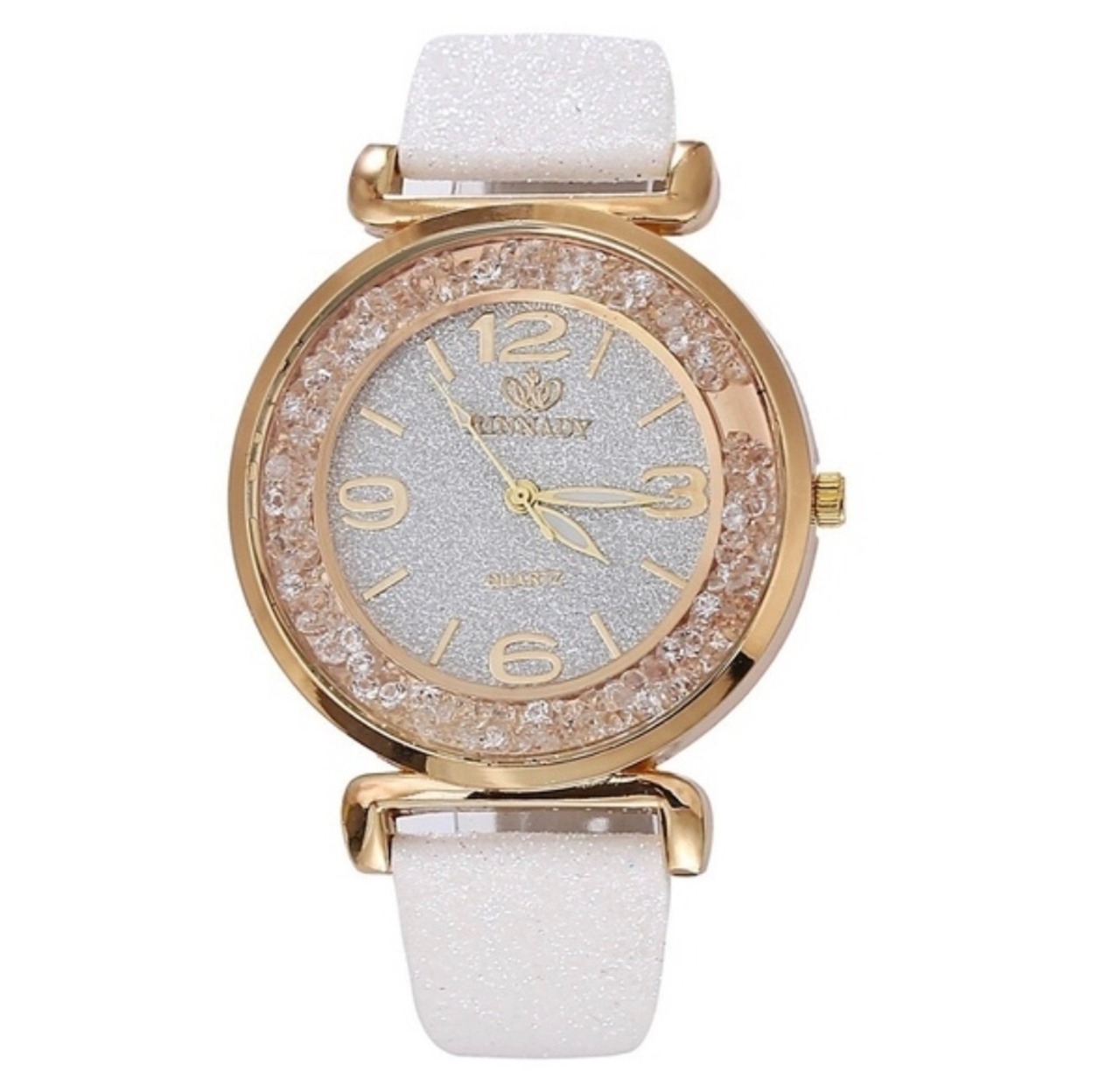 【即納】♡セレブ ホワイトラメ ベージュゴールドラメデザイン 腕時計♡キラキラ ゴールドフレーム文字盤 ゴージャス 可愛い オシャレ ホワイト秒針