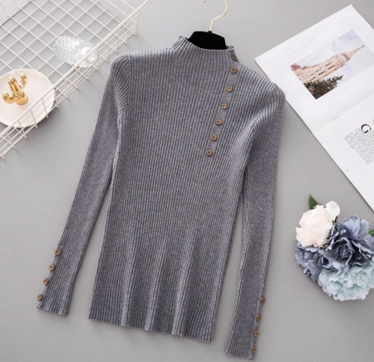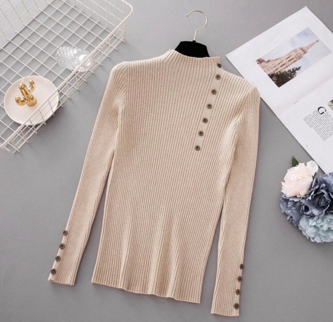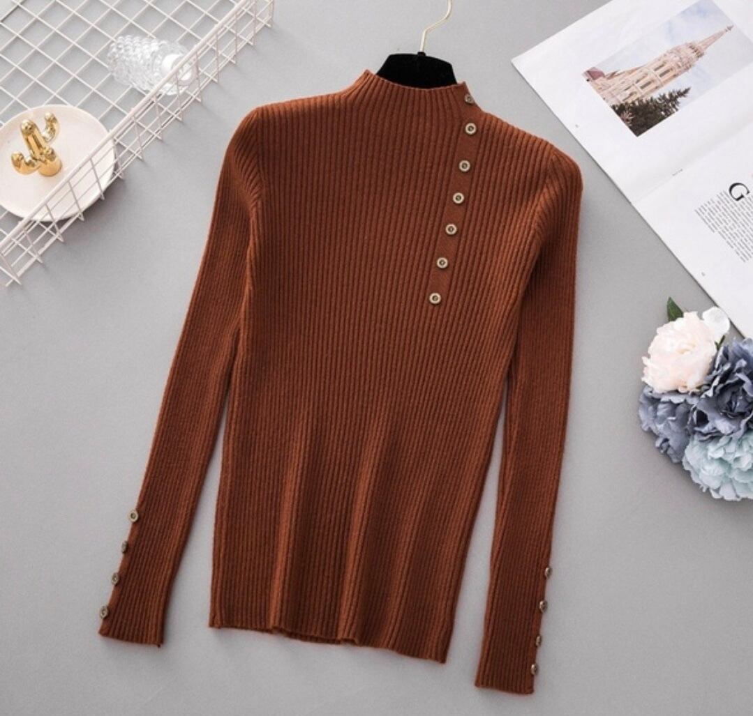 【再々入荷】在庫なしお取り寄せ可能♡肌ストレスフリー♡レトロなボタンデザイン トップス ハイネックニット♡トップス オシャレ 昭和レトロコーディネート フレンチレトロコーディネート タートルネック マスタードイエロー グリーン ピンク ブラウン ブラック ホワイト