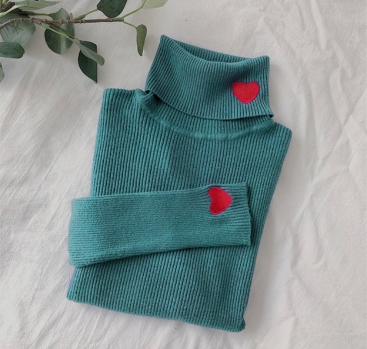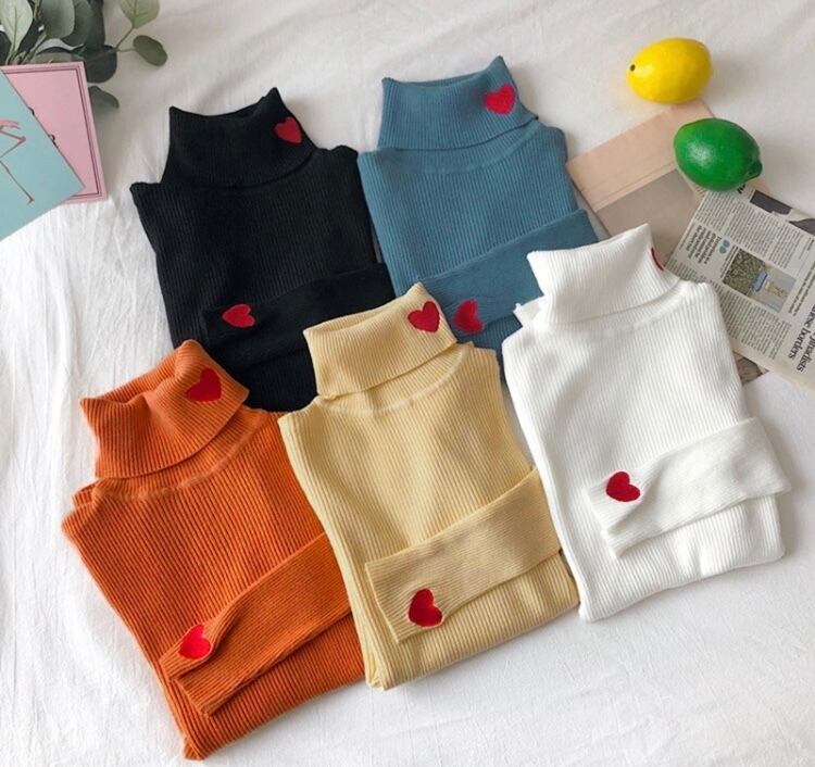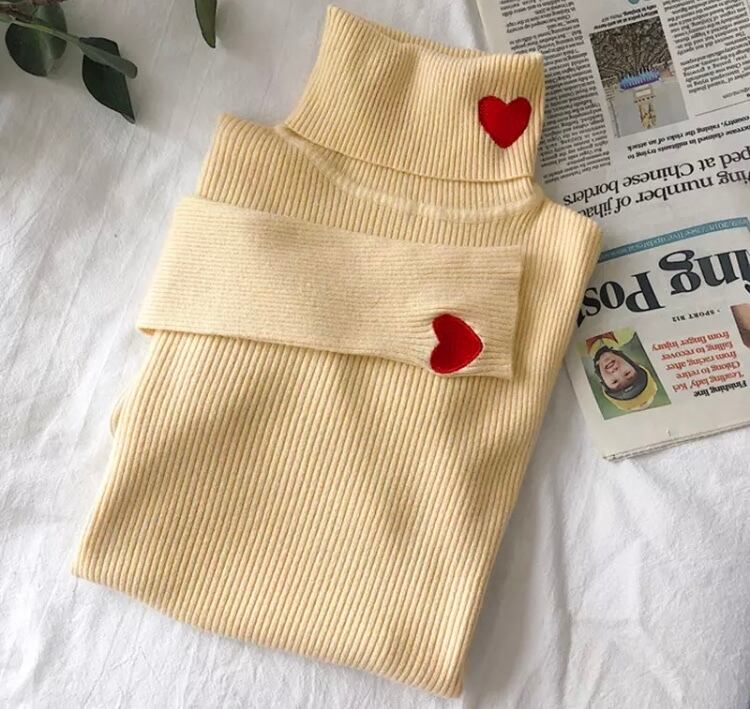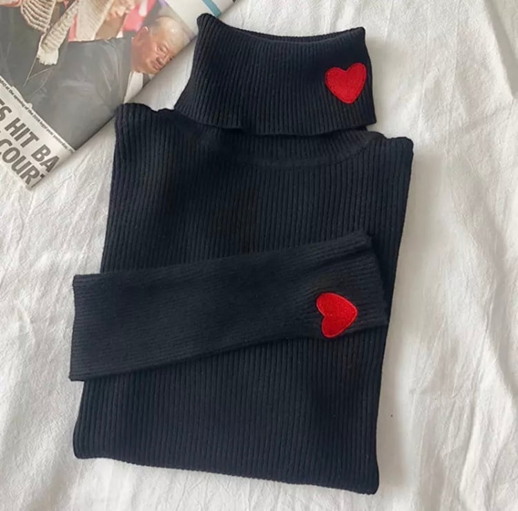 赤のハートとお色の組み合わせの可愛いタートルネックのニットになります♡