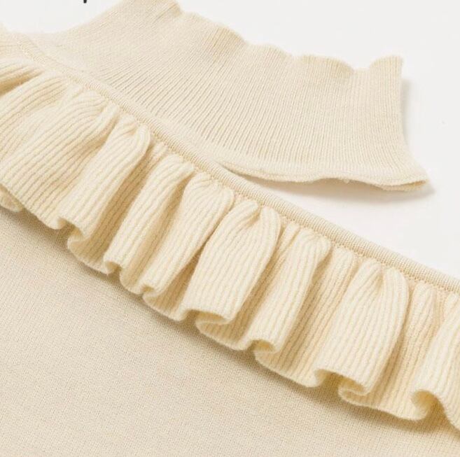 オープンショルダーにニットのフリル満載のハイネックニットになります♡