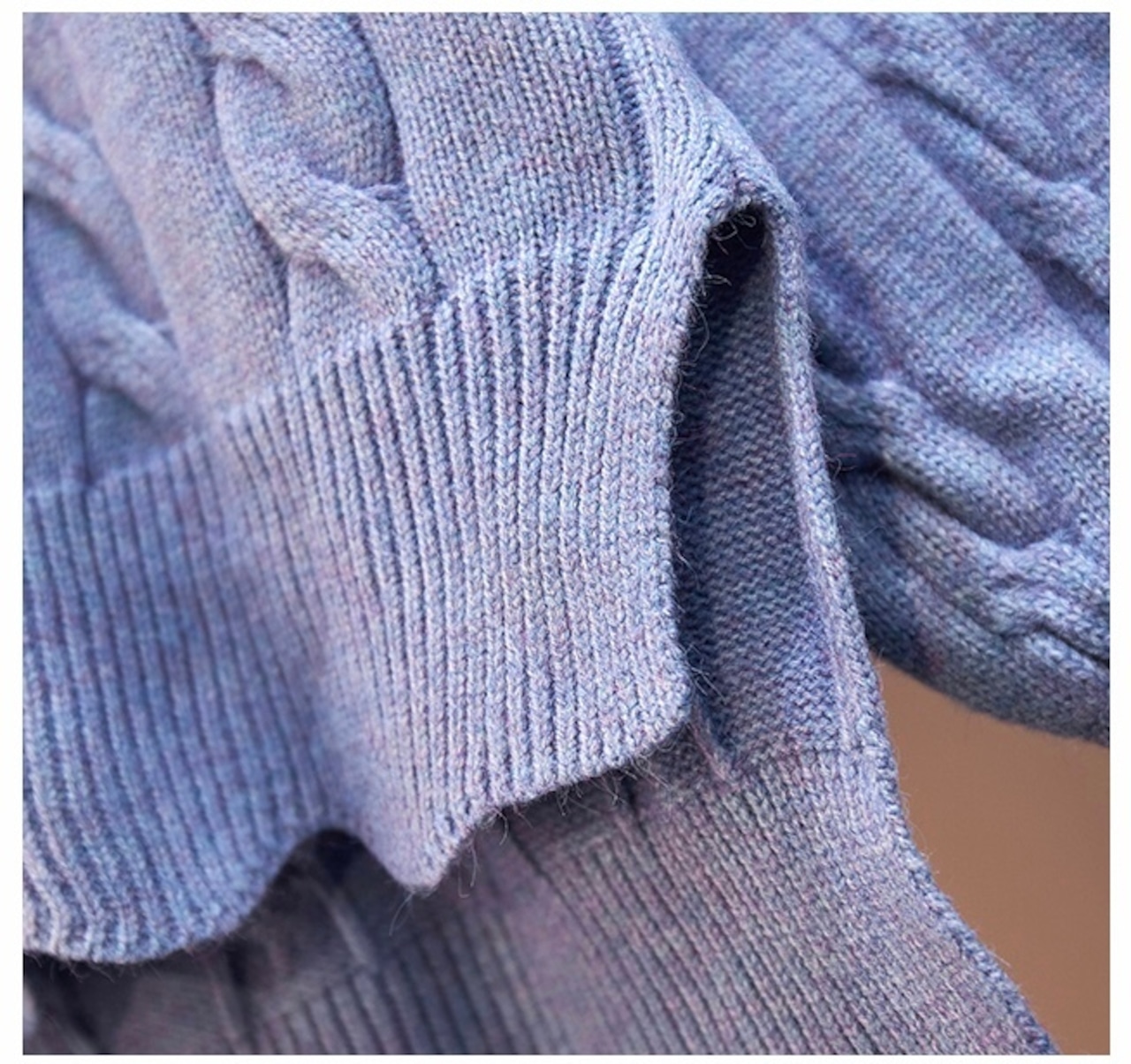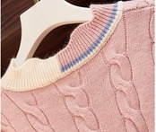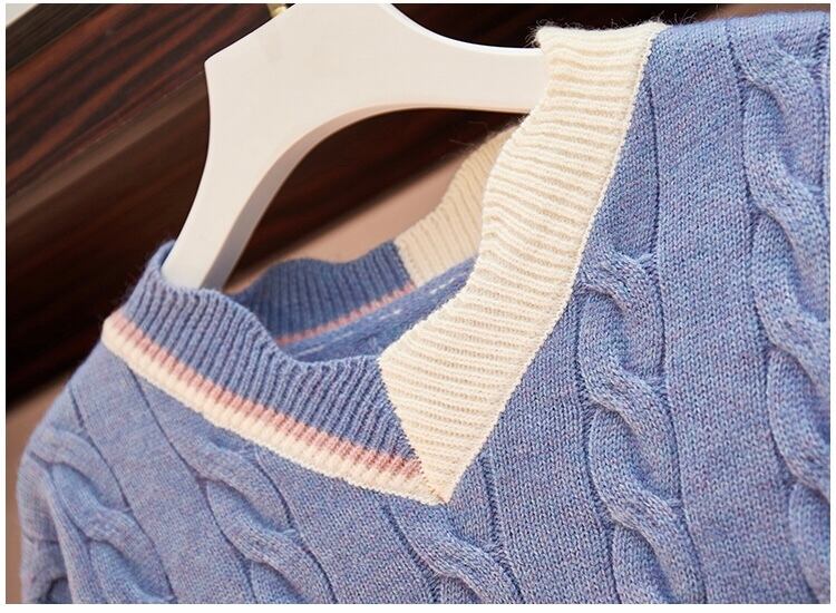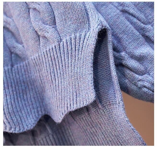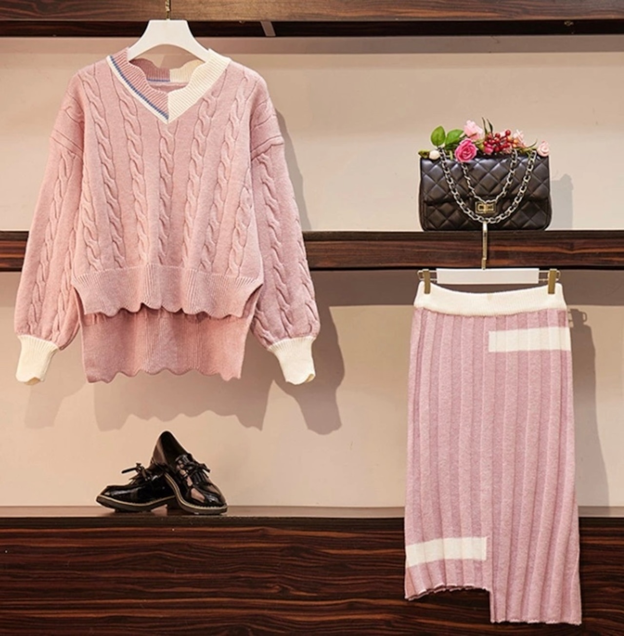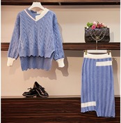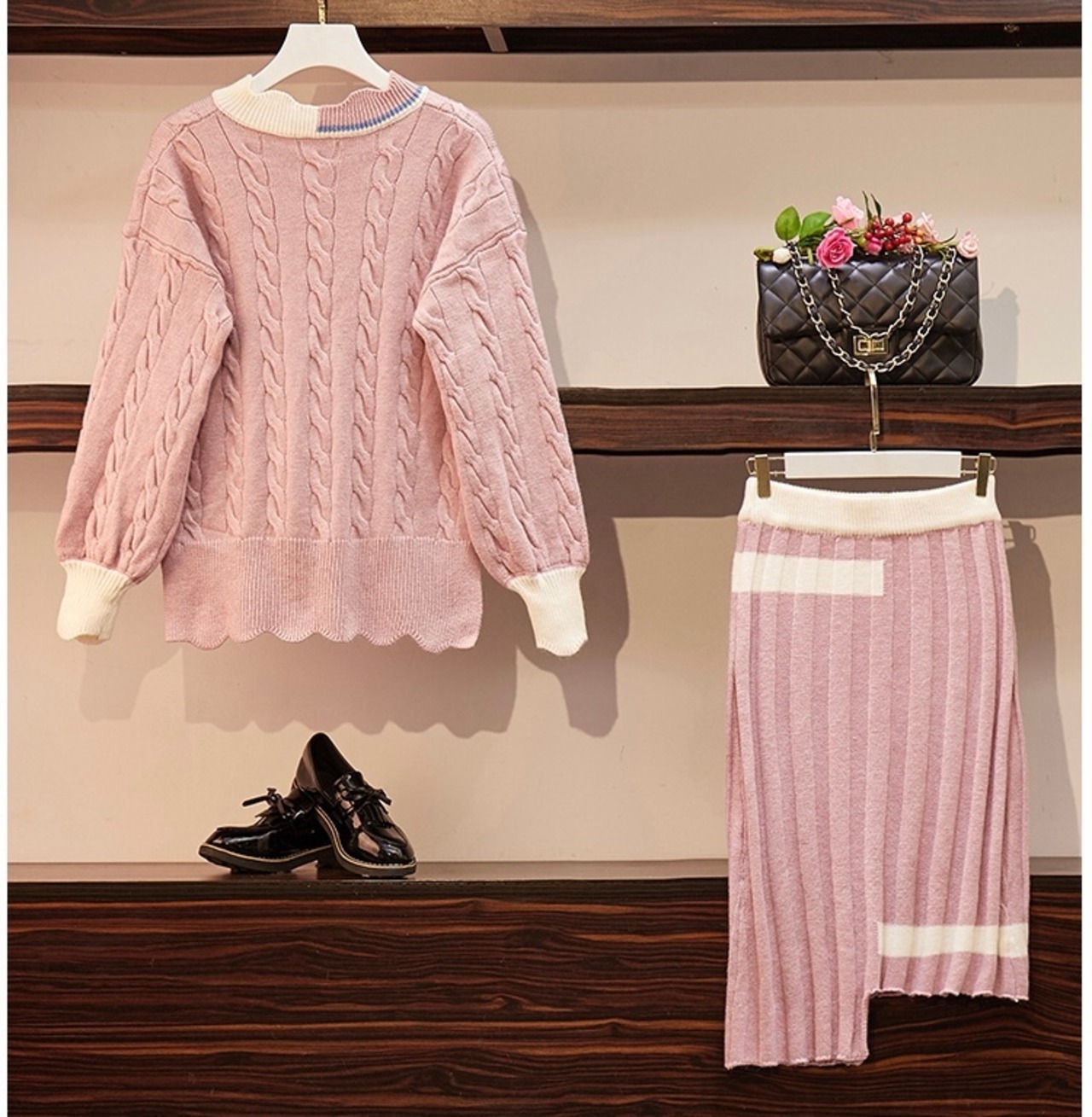 ♡秋冬新作 変形オシャレ ストライプニットセーター×スカートセット♡セットアップ プルオーバー ピンク ブルー 白ライン ホワイトライン