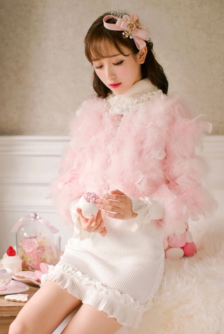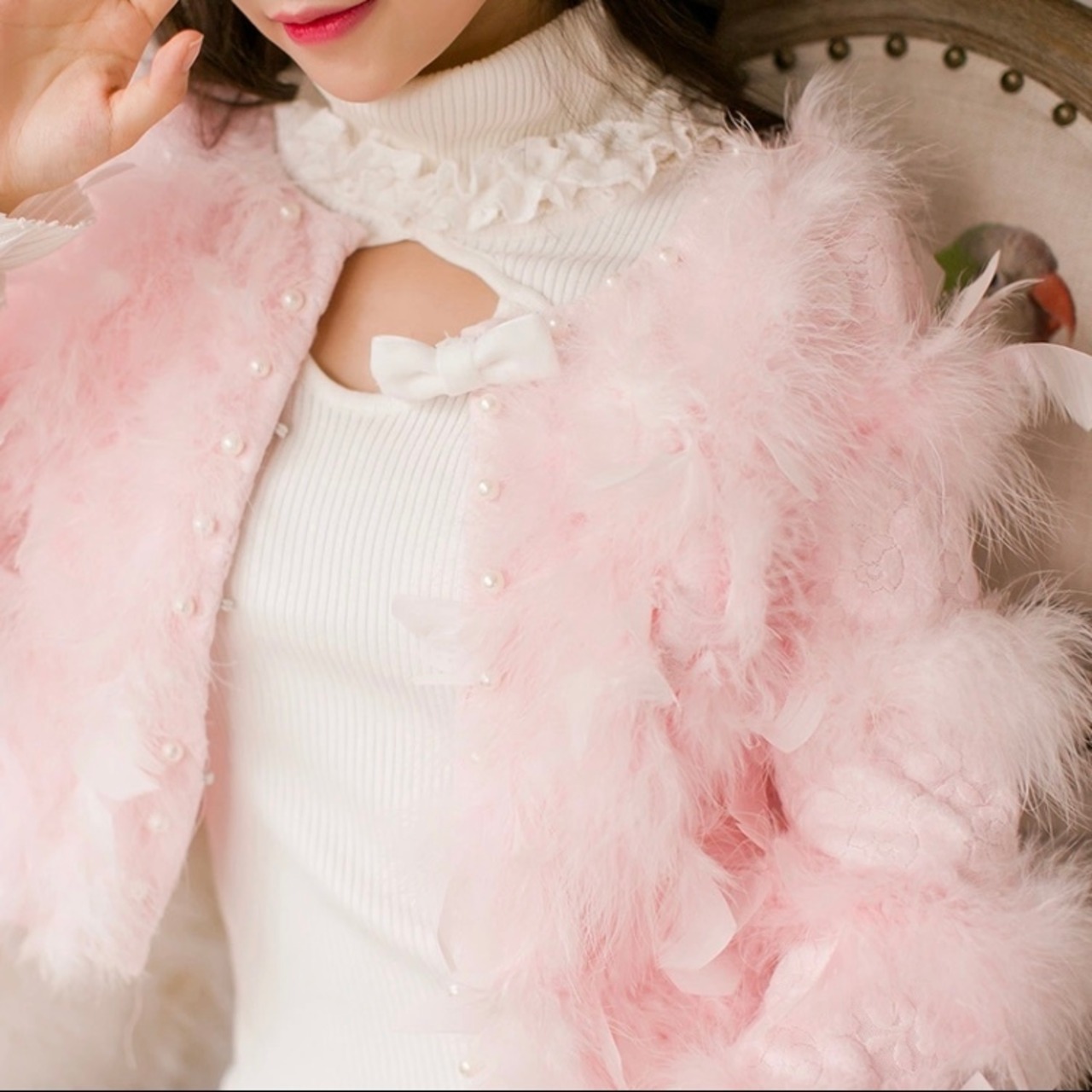 ♡ふわふわベビーピンク おリボン留めプリンセスジャケット♡ピンク パール ホワイト 羽 モコモコ