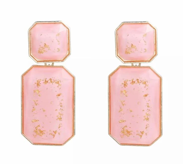 【即納】 ♡ヴィンテージデザイン スクエアベビーピンクピアス♡ゴールド 可愛い レトロ プリティ ピンク おしゃれ フレンチレトロ Barbie パーティー 撮影