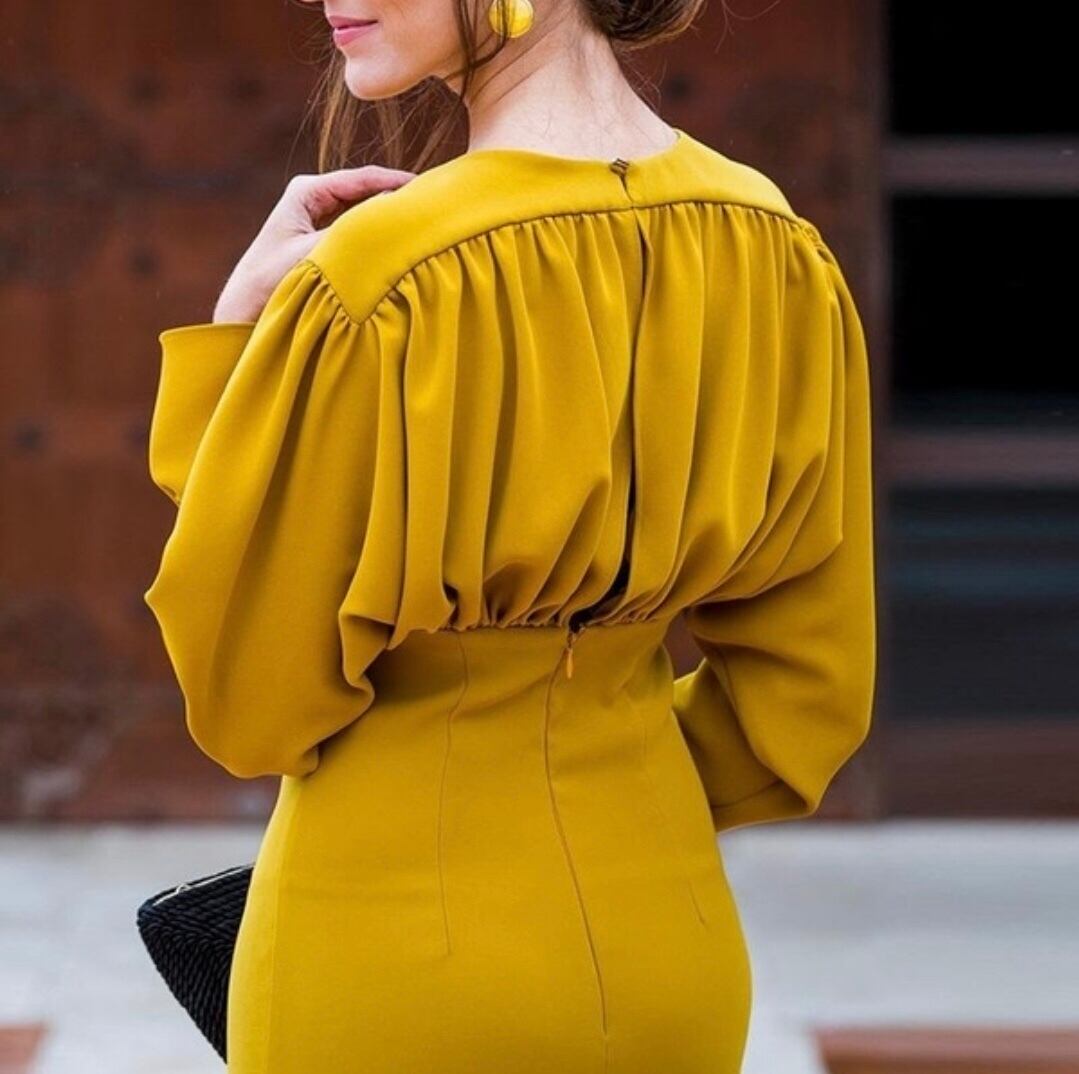 【即納】♡おしゃれでレトロな映画女優ワンピース♡上品 50'S 60'S ヴィンテージ セクシー レディ 可愛い 高級 セレブ 上品 マスタードイエロー