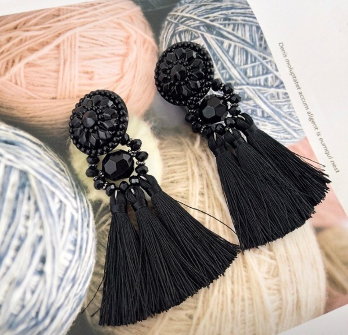 【即納】三点セット ♡フリンジ 女優ピアス3カラー♡フレンチレトロ Barbie バービー人形 セレブ オシャレ