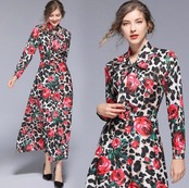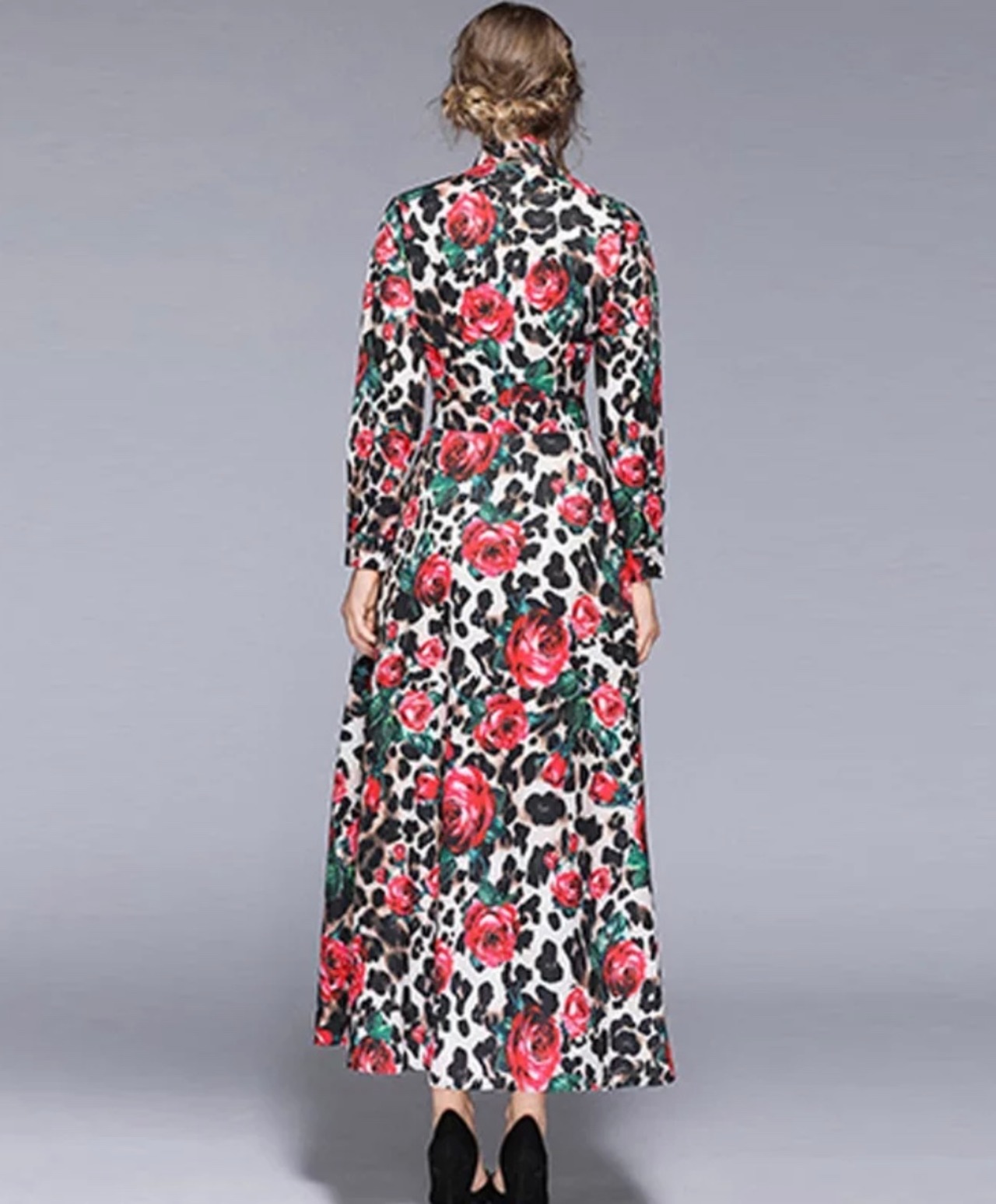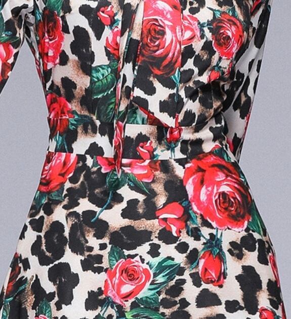 生産終了在庫限り❣️【即納】 ☆ヴィンテージデザイン☆ヒョウ×ローズ柄のセレブな長袖シャツワンピースドレス☆