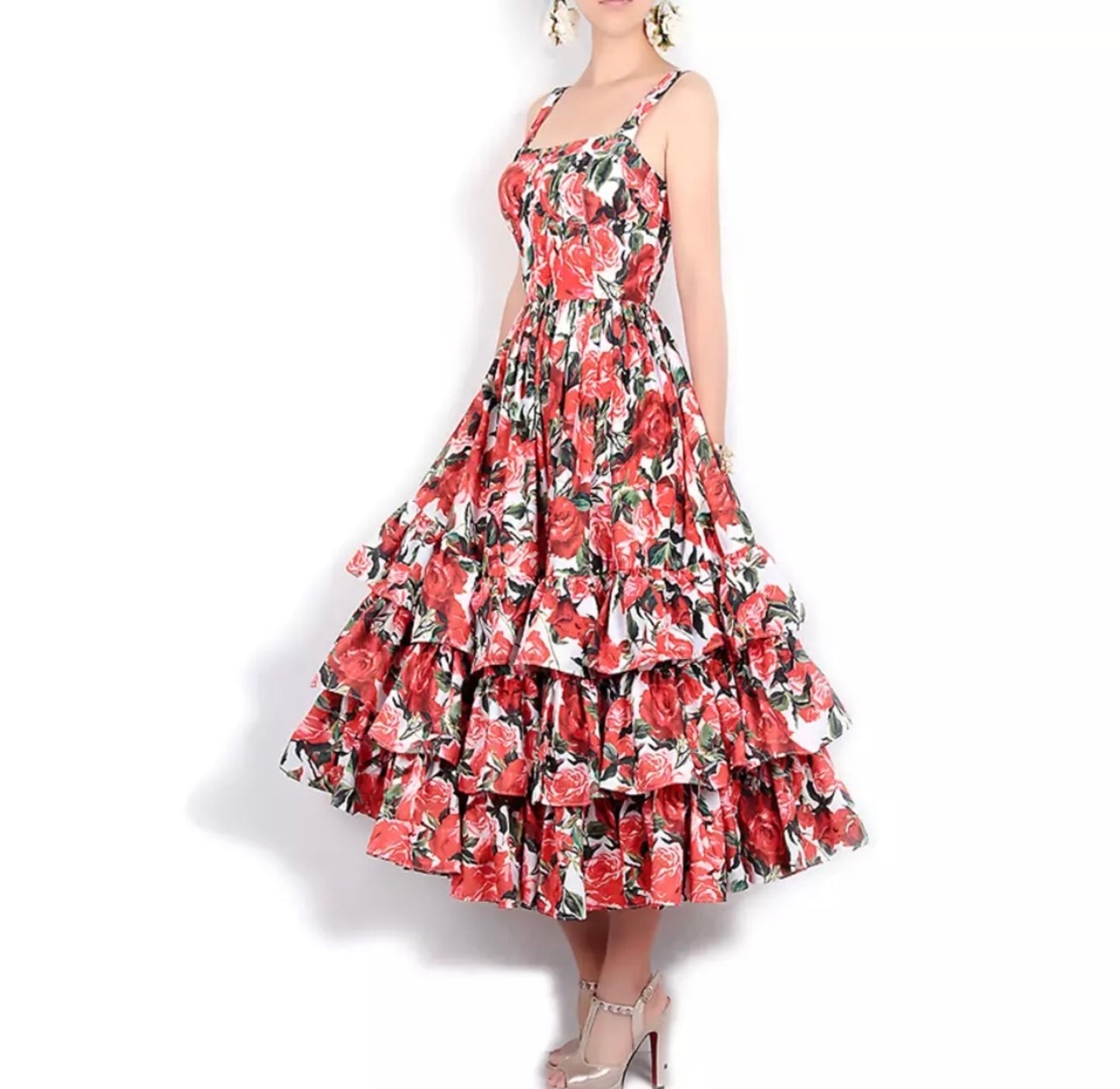 送料無料【即納】 ラスト一点♡薔薇柄ティアードフリル満載のドレスワンピース♡