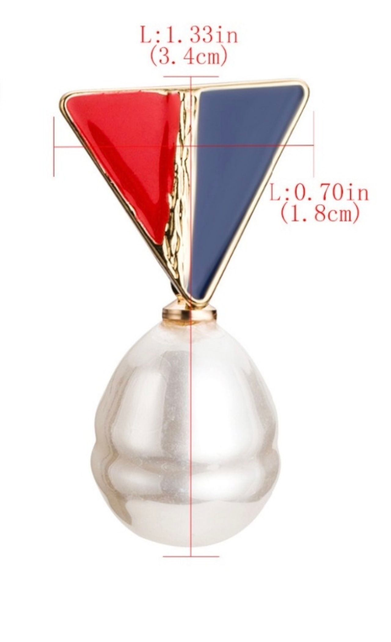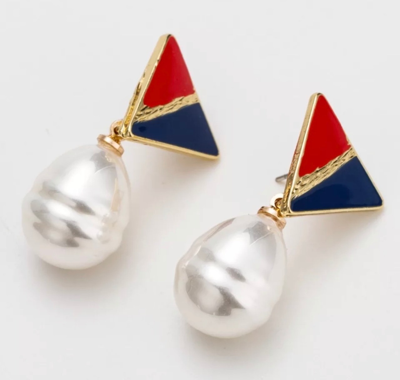 レッドとブルーの反対色にパールが揺れるレトロな色使いのピアスになります♡