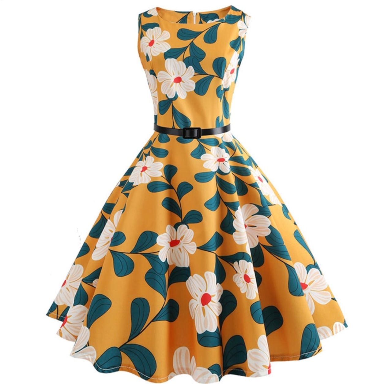 【即納】 ♡レトロモダンなヴィンテージノースリーブフレアワンピース♡ベルト付き