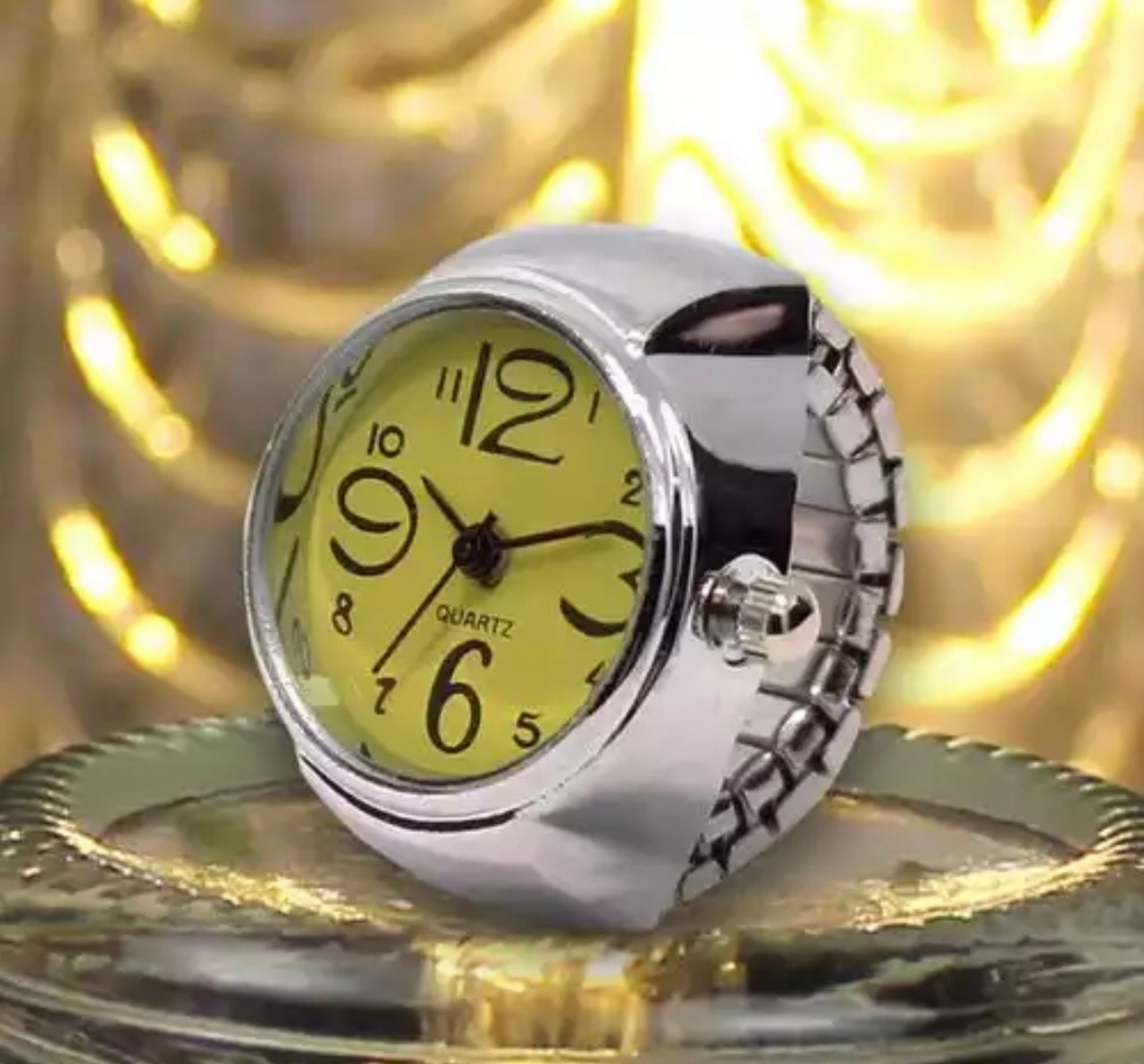 ♡ 指輪型の時計♡アメリカンレトロなリングウォッチ♡イエロー♡