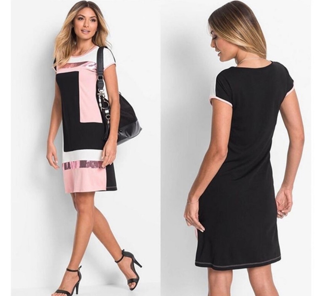 【即納】 ♡黒×ベビーピンク スパンコール付お洒落ミニワンピース♡