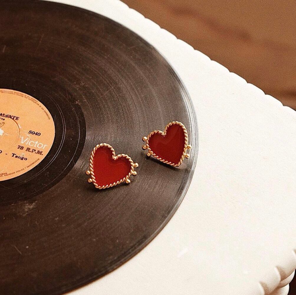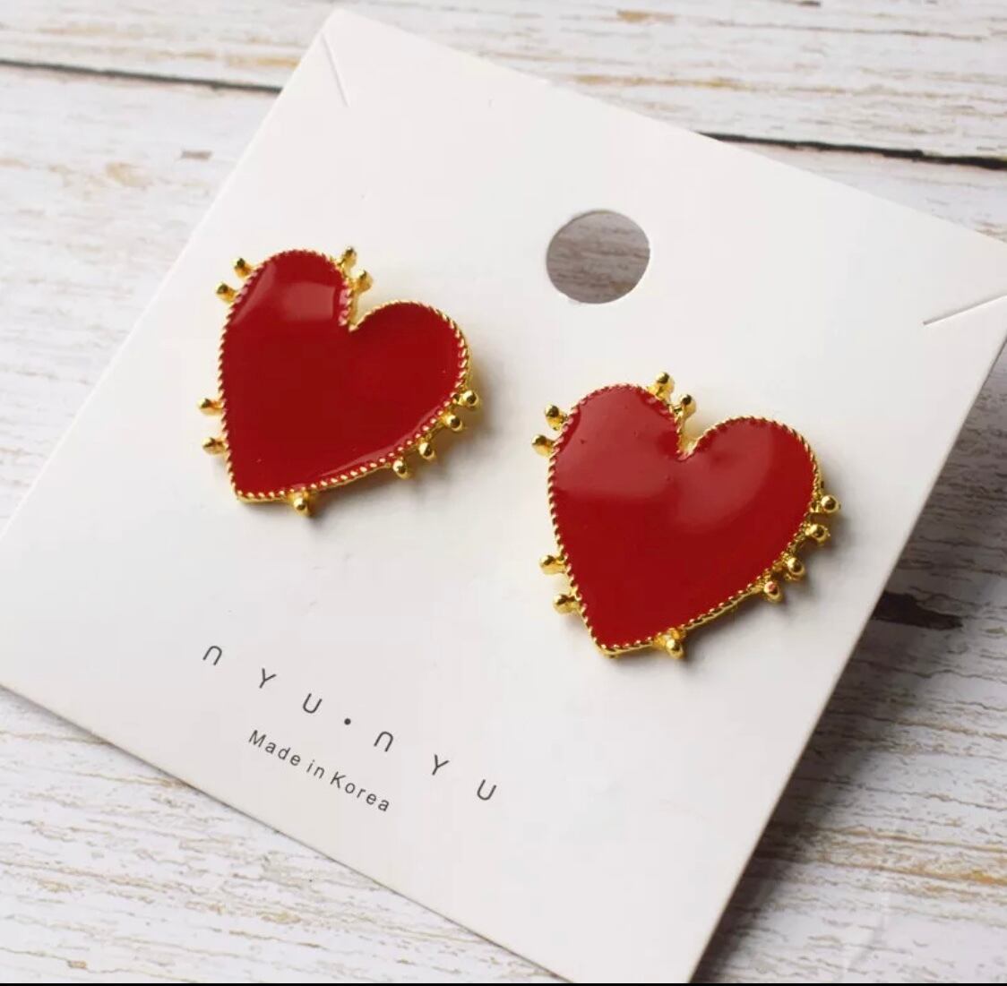【即納】 ♡ゴールド縁の赤ハートのラブピアス♡