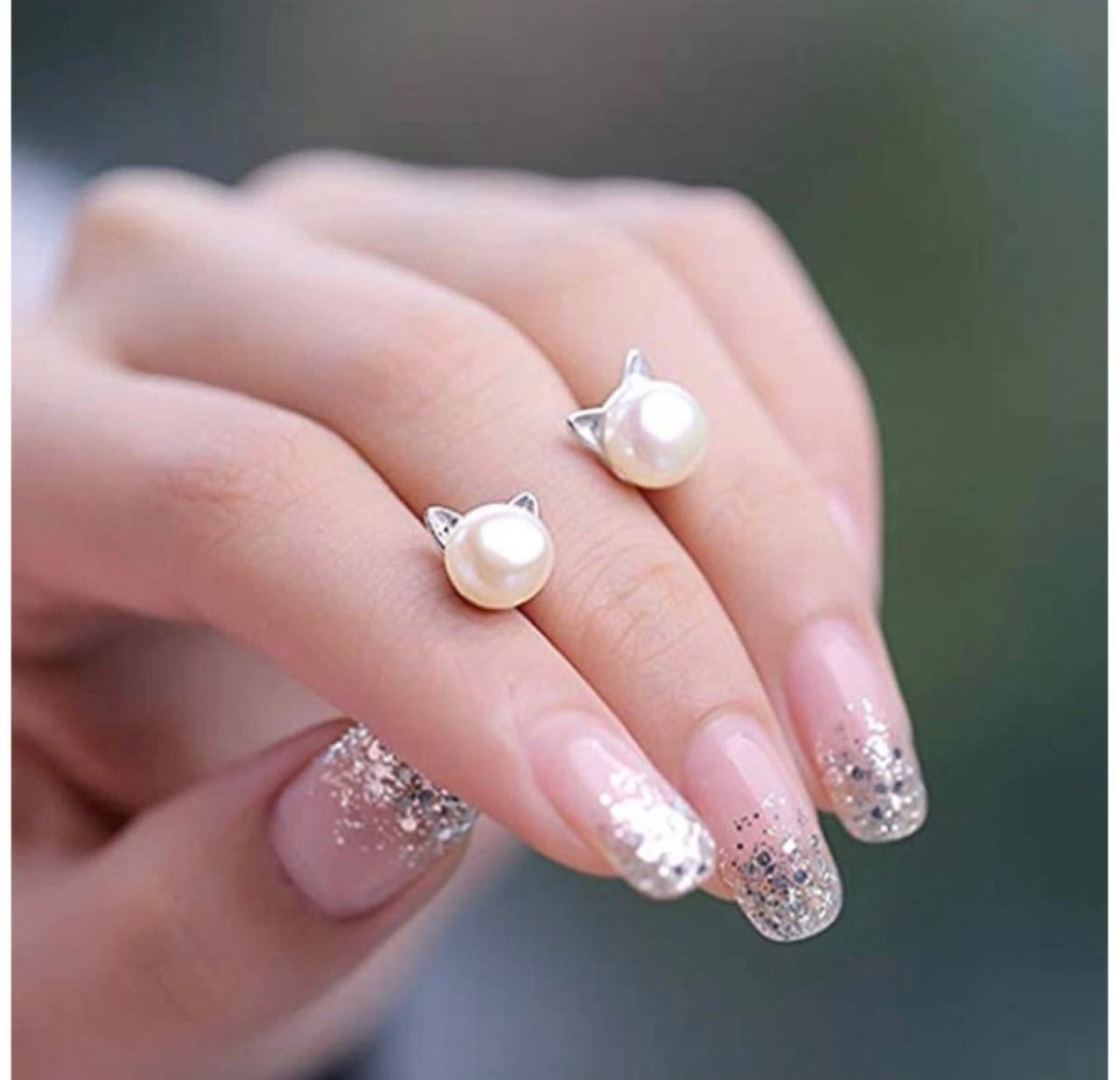 【即納】 ♡淡水パールの猫耳付きシルバーピアス♡