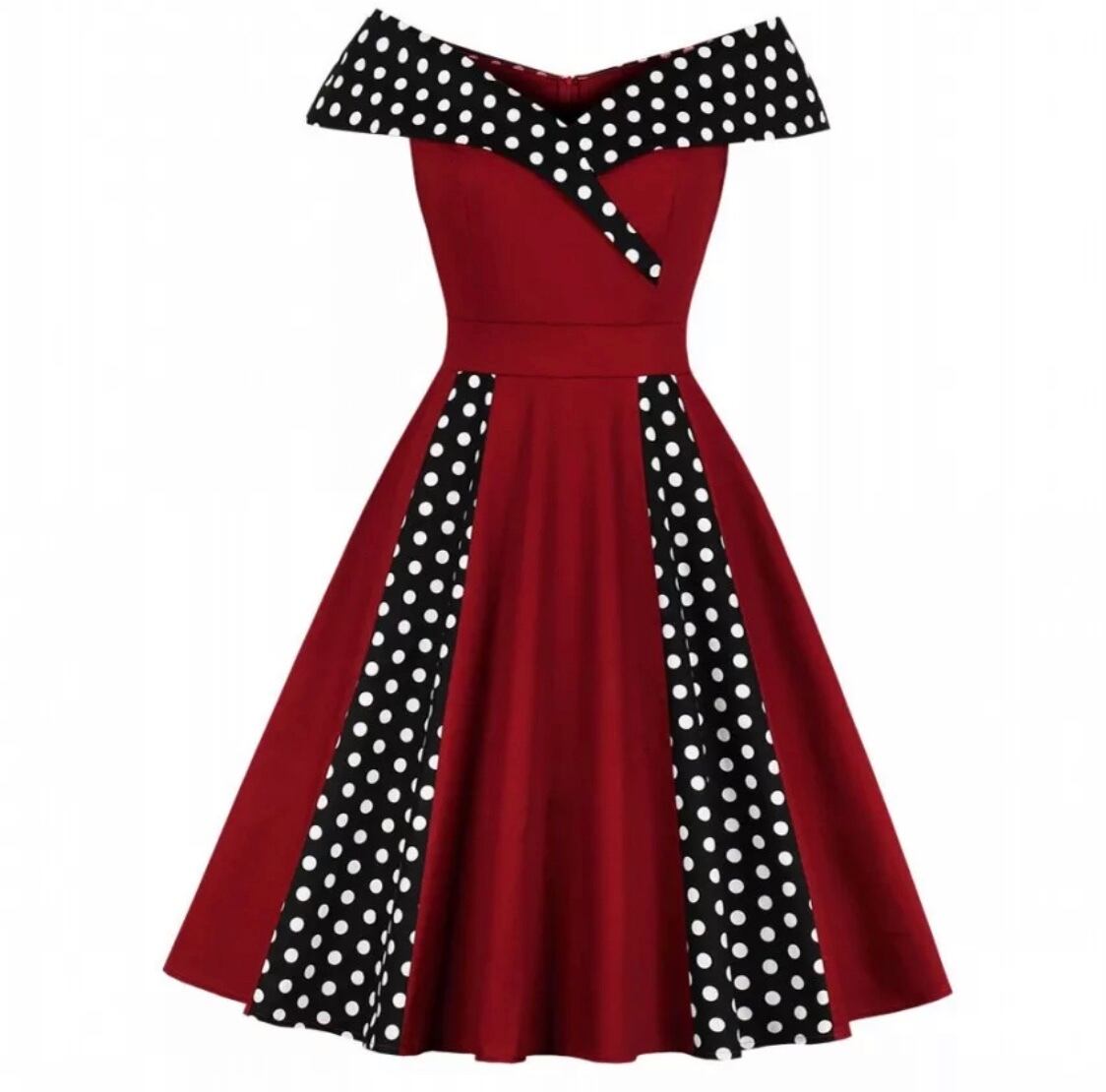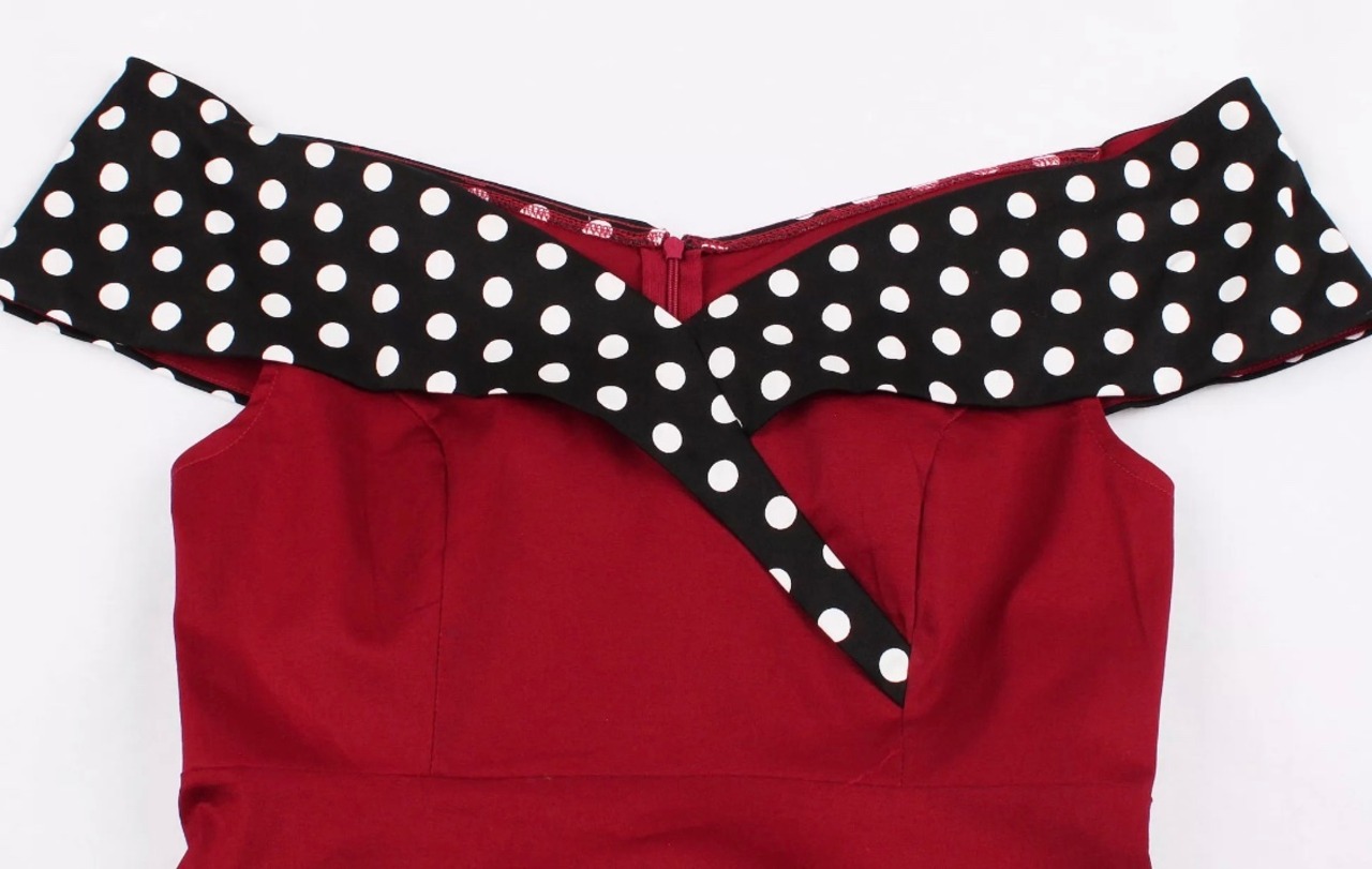 50S 60SのヴィンテージデザインのオフショルダーVネックレトロワンピースになります(๑ơ ₃ ơ)♥