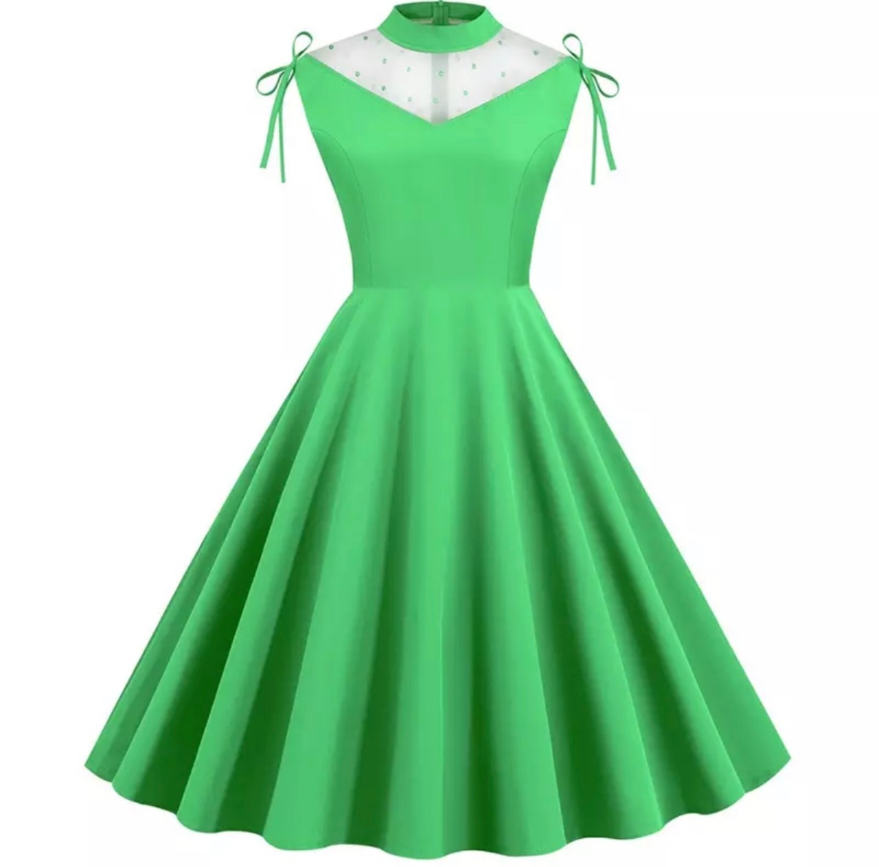 タートルネックのお襟とグリーンのパール縫い付け透け感のデザインがとても可愛いヴィンテージドレスになります♡
