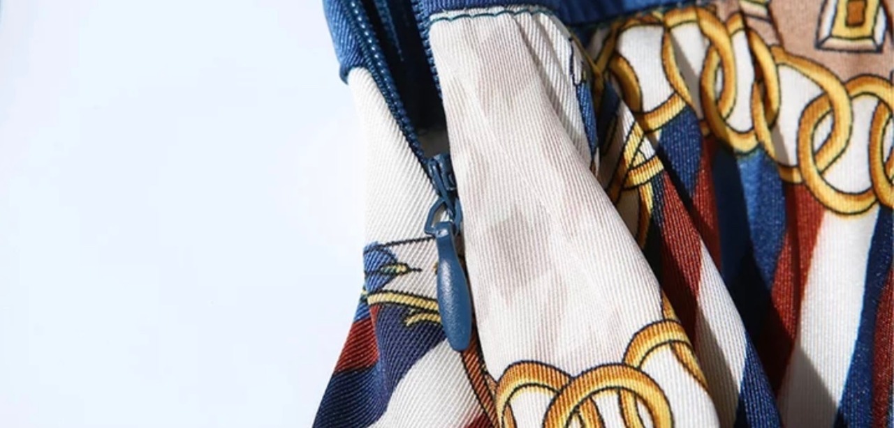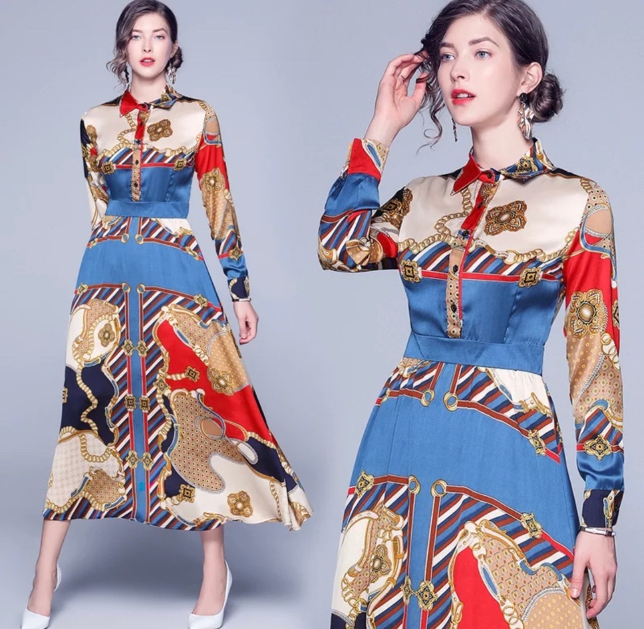 【即納】♡チェーンスカーフ柄 お上品華やかレディーのワンピース♡