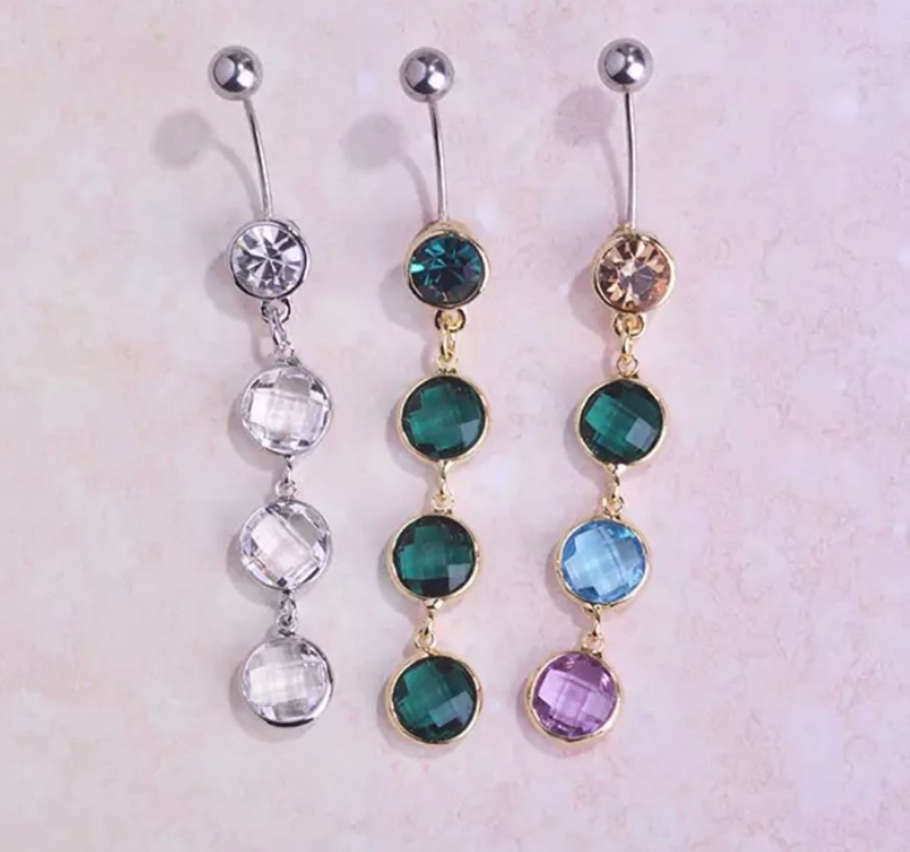 4色のラインストーンのゆらゆら揺れるボディピアスになります♡