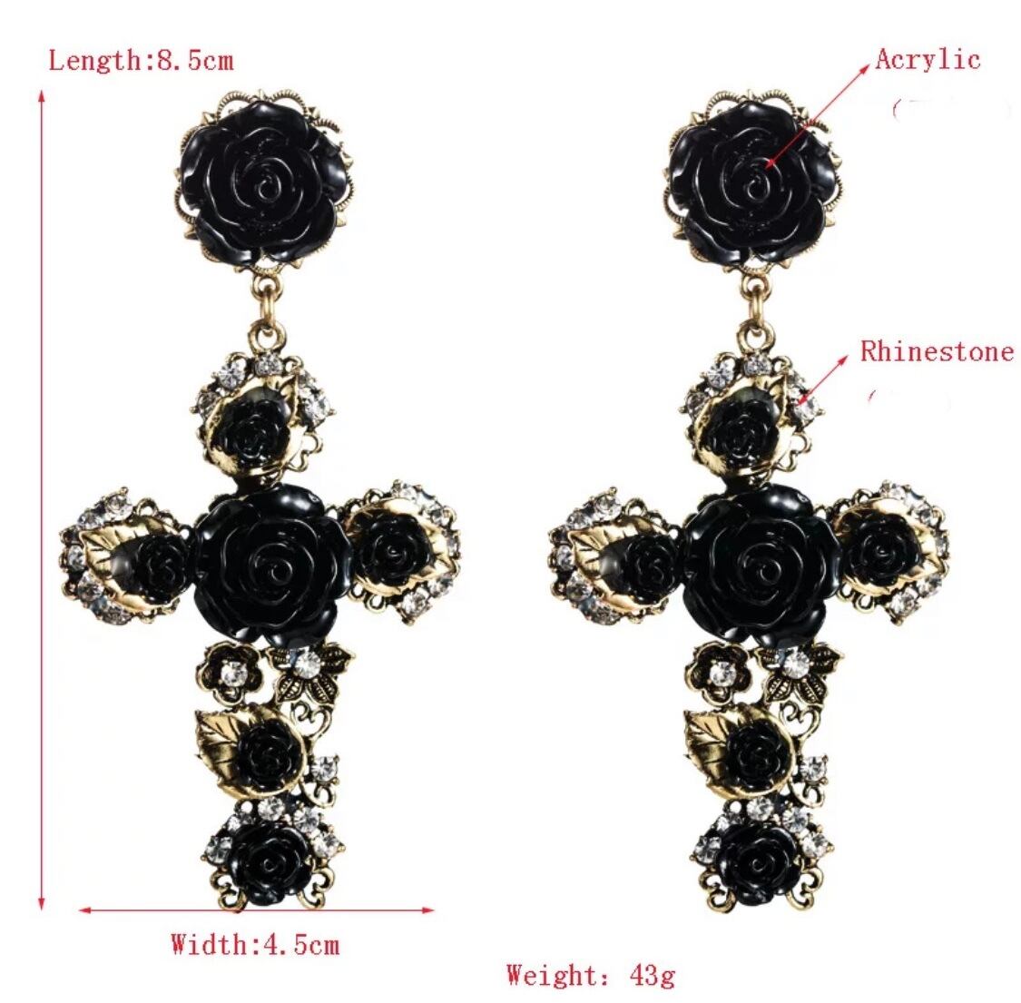 【即納】♡ロココ調♡乙女の貴婦人精神薔薇のヴィンテージピアス♡十字架♡クロス♡ 薔薇 ばら ゴールド 姫 お嬢様 セレブ 可愛い クリスマス♡