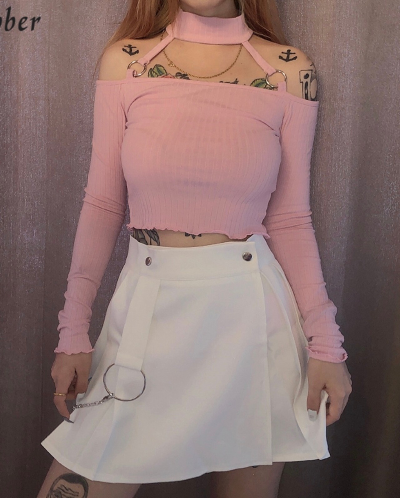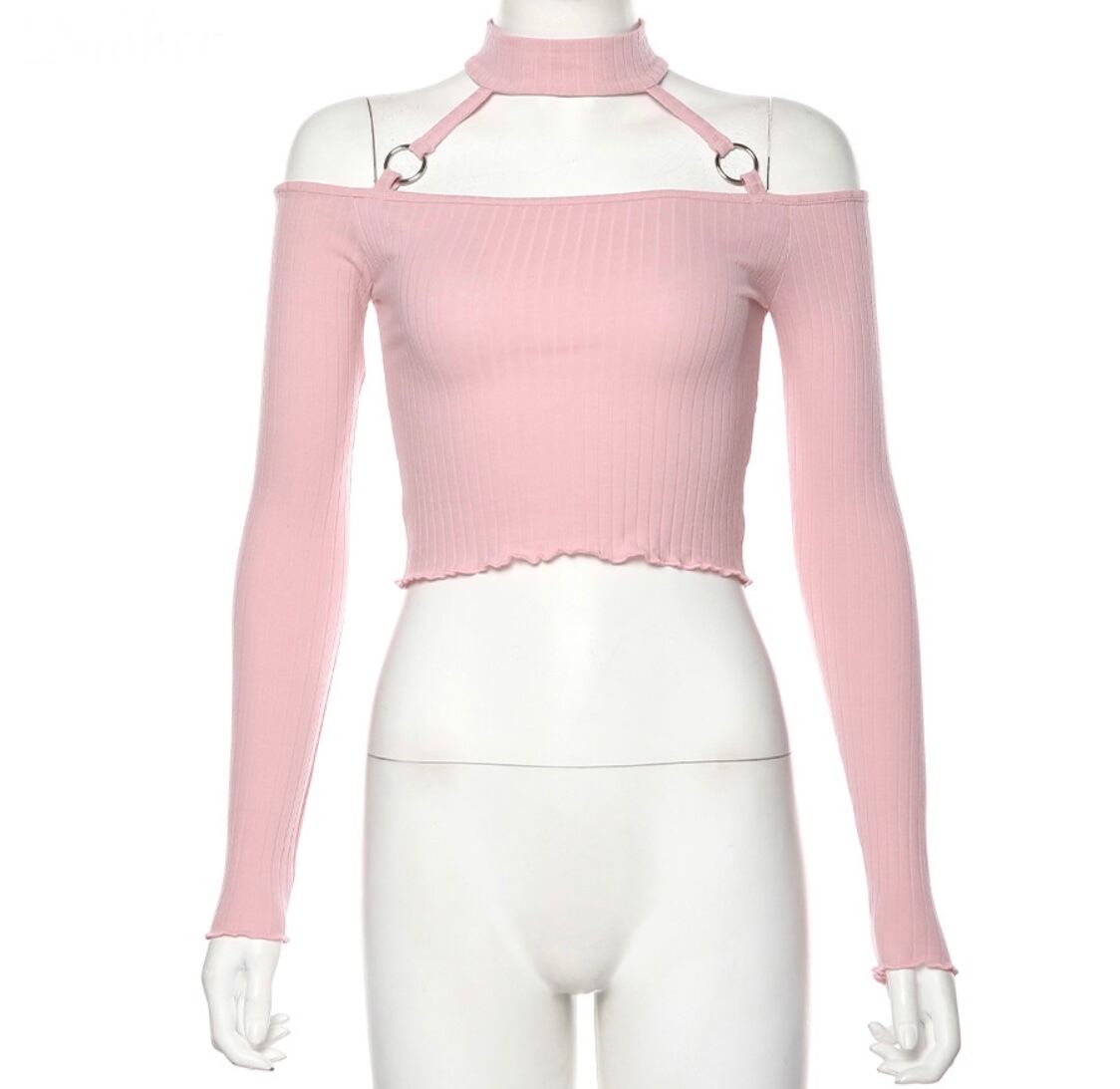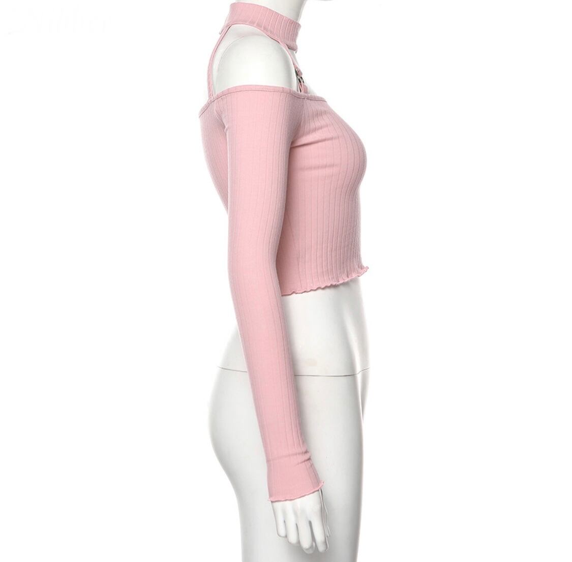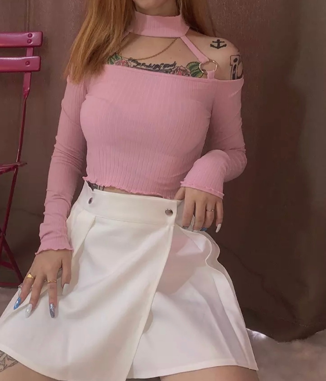 ネックがチョーカーの様になっているかわいいピンクのトップになります♡