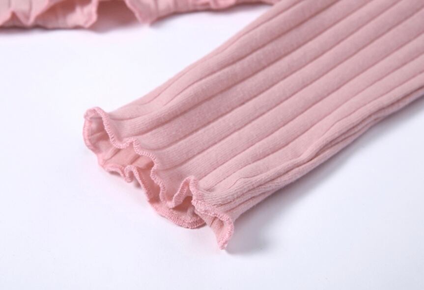 スパンデックス混なので伸縮性が高く、裾やお袖口がフリル加工なのもラブリーです(*˘︶˘*).。.:*♡