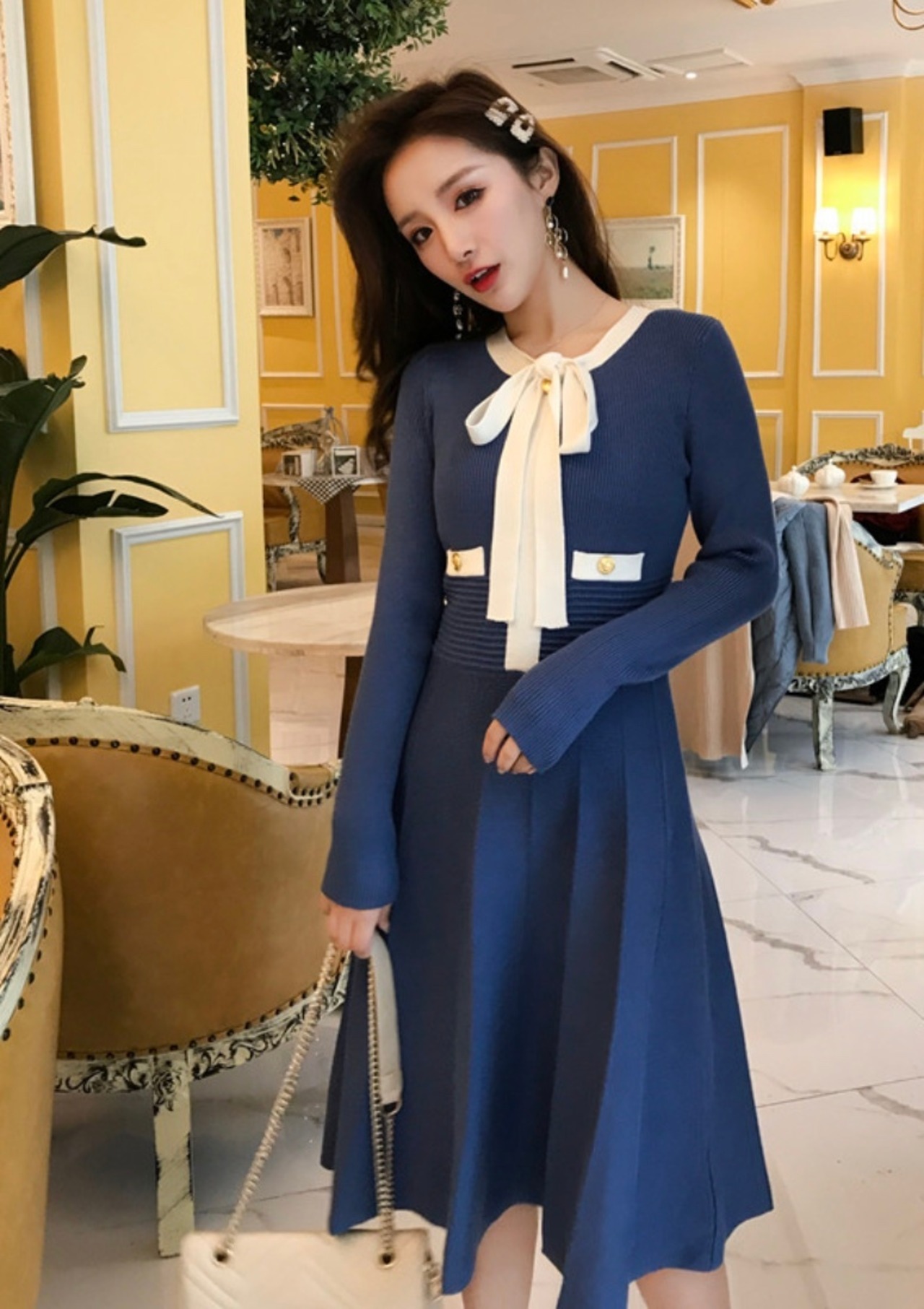 ブルーのお嬢様スタイルの上品なニットワンピースになります♡