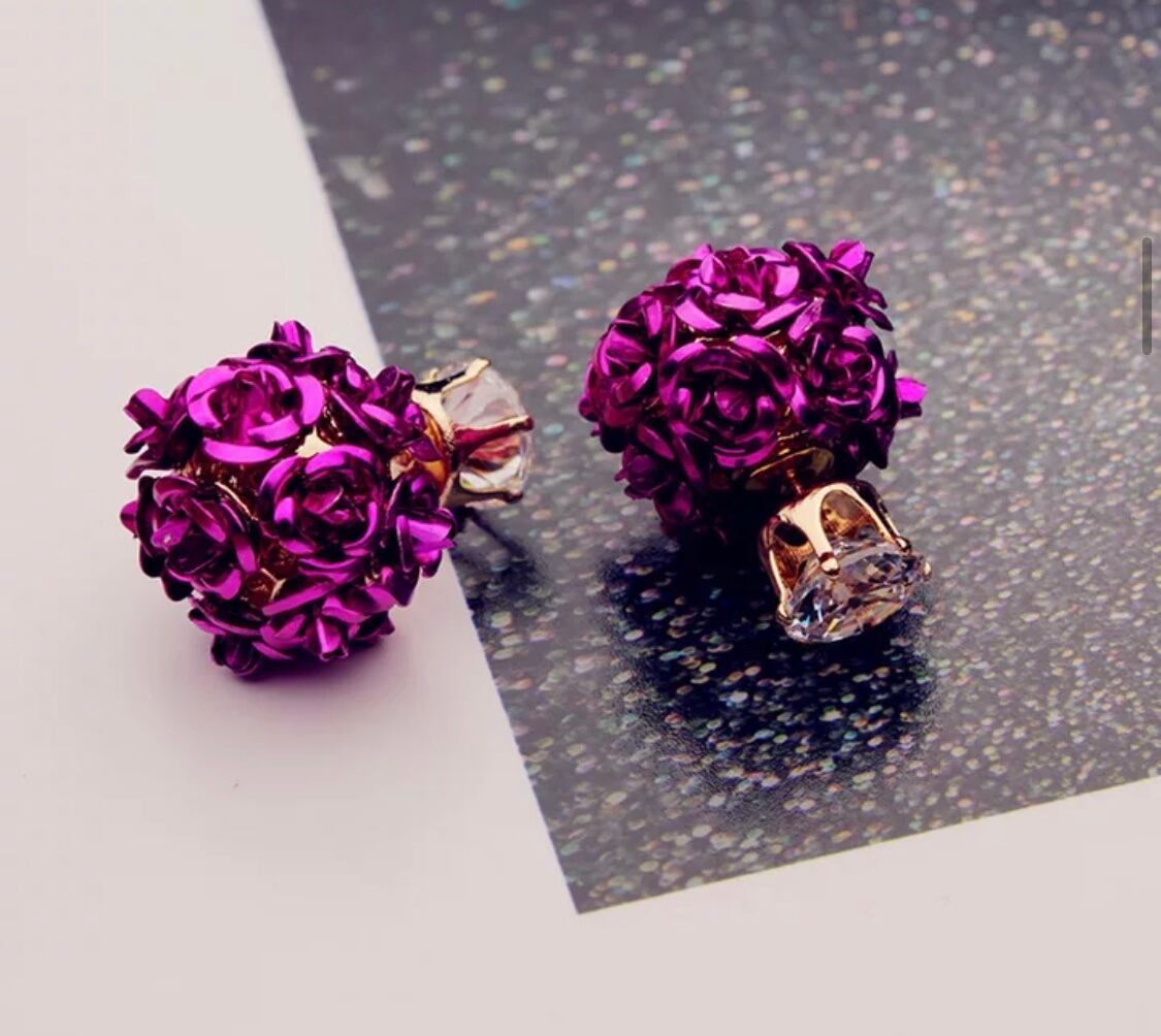 【再入荷 即納】7カラー♡バラの花束両面ピアス♡黒薔薇♡モダン