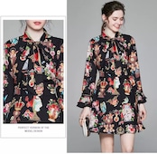 ブラックにロココ調のアンティーク柄がとても可愛いワンピースになります♡