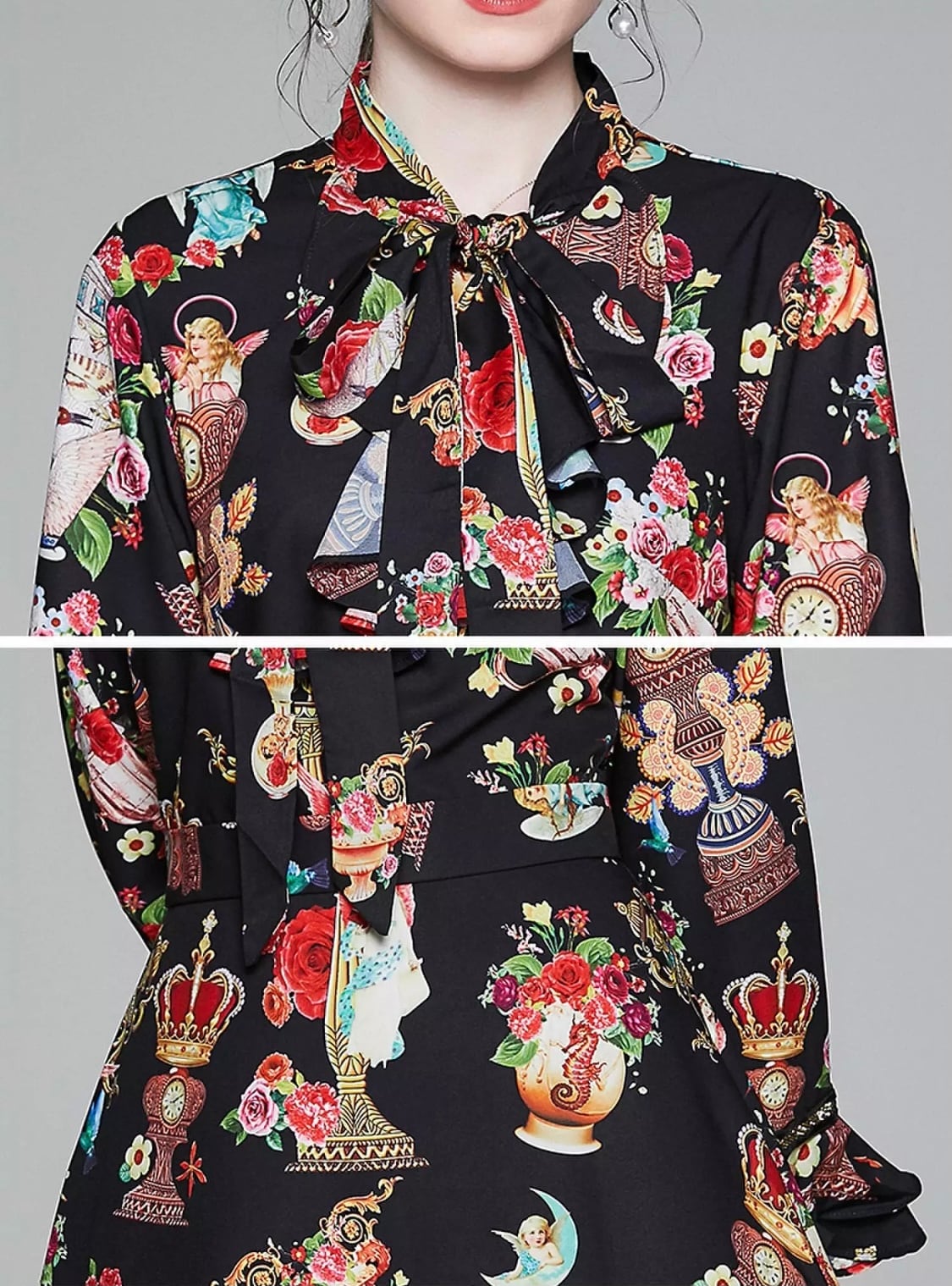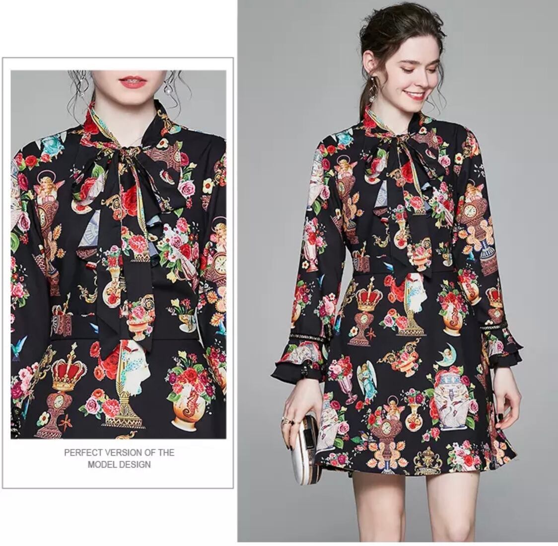【即納】♡ヨーロッパアンティーク柄の大人可愛いワンピース♡天使 王冠 薔薇 ロココ調