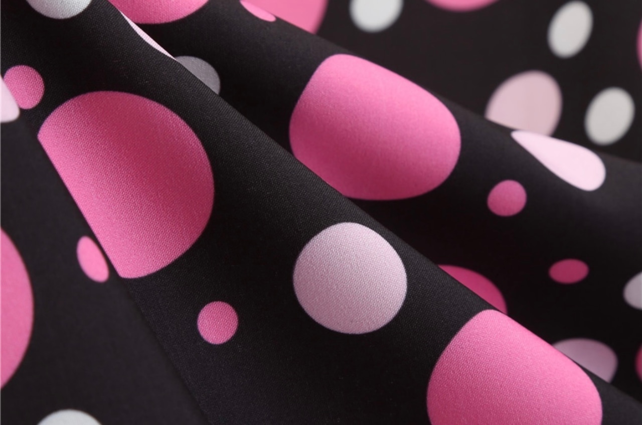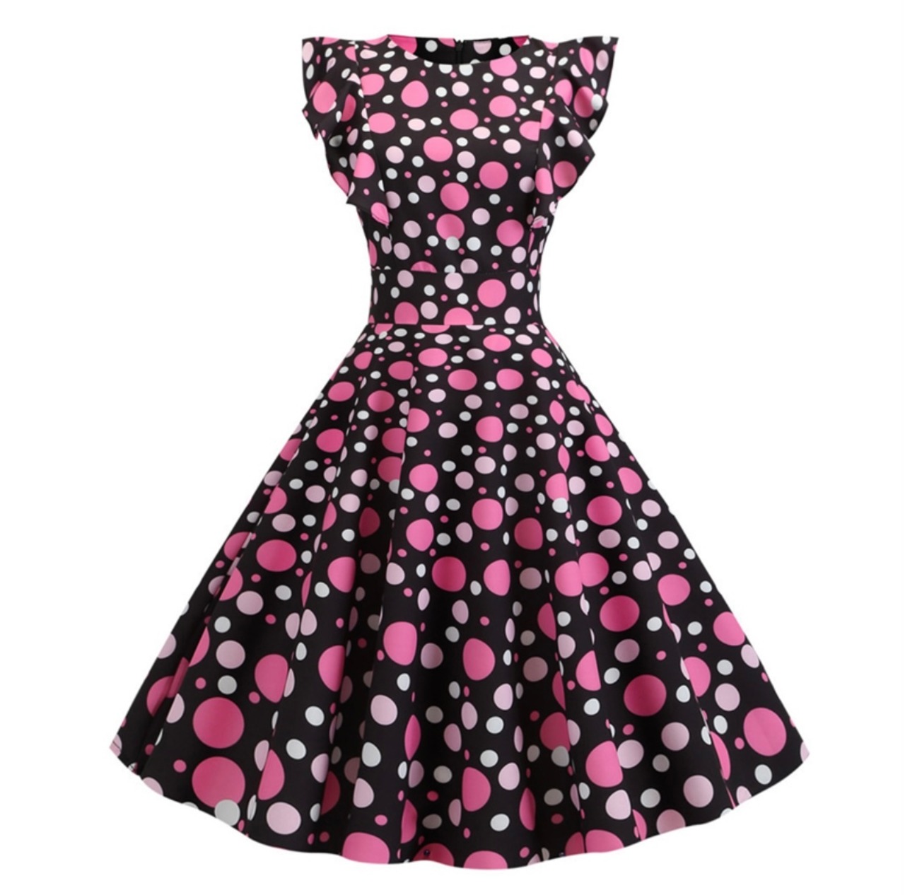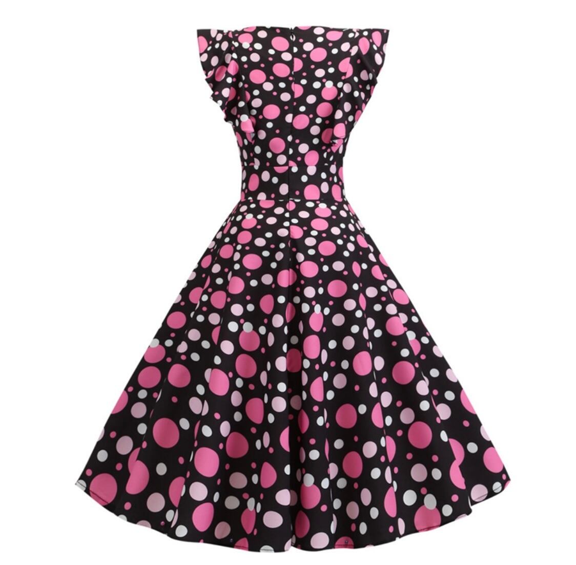 【即納】♡モダンなヴィンテージデザイン生地♡エンジェルスリーブのピンクドットの詰め合わせフレアワンピース♡