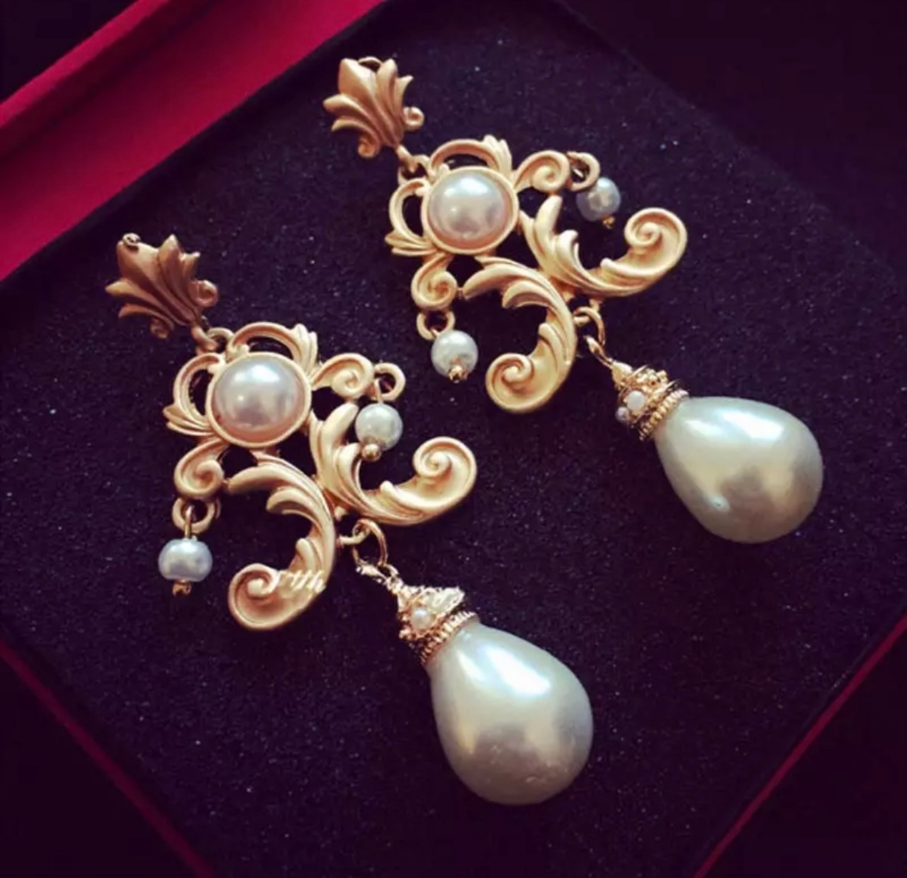 【即納】♡ロココ調のパールの貴婦人ピアス♡ヴィンテージ 宮殿 バロック 姫