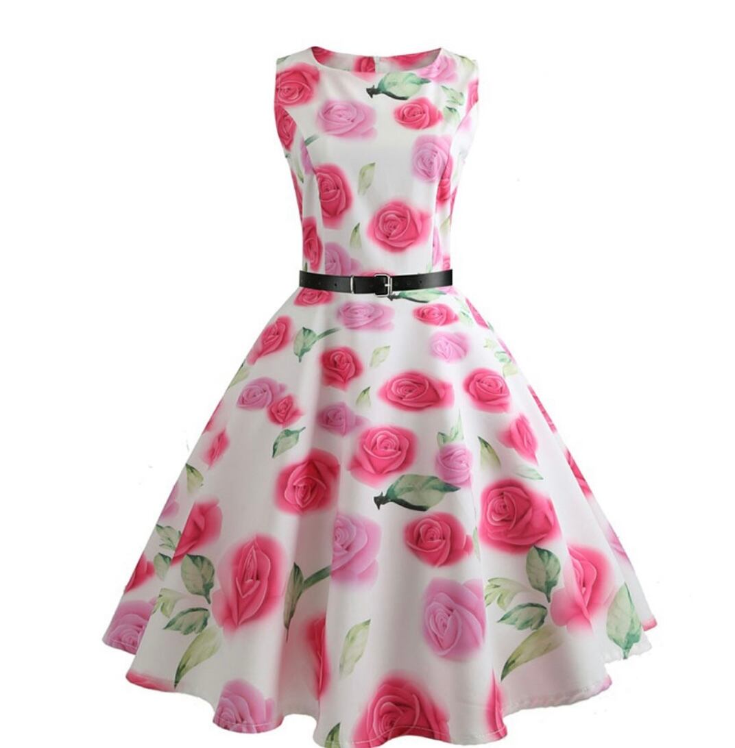 ノースリーブのふんわりとバラが描かれたワンピースになります♡