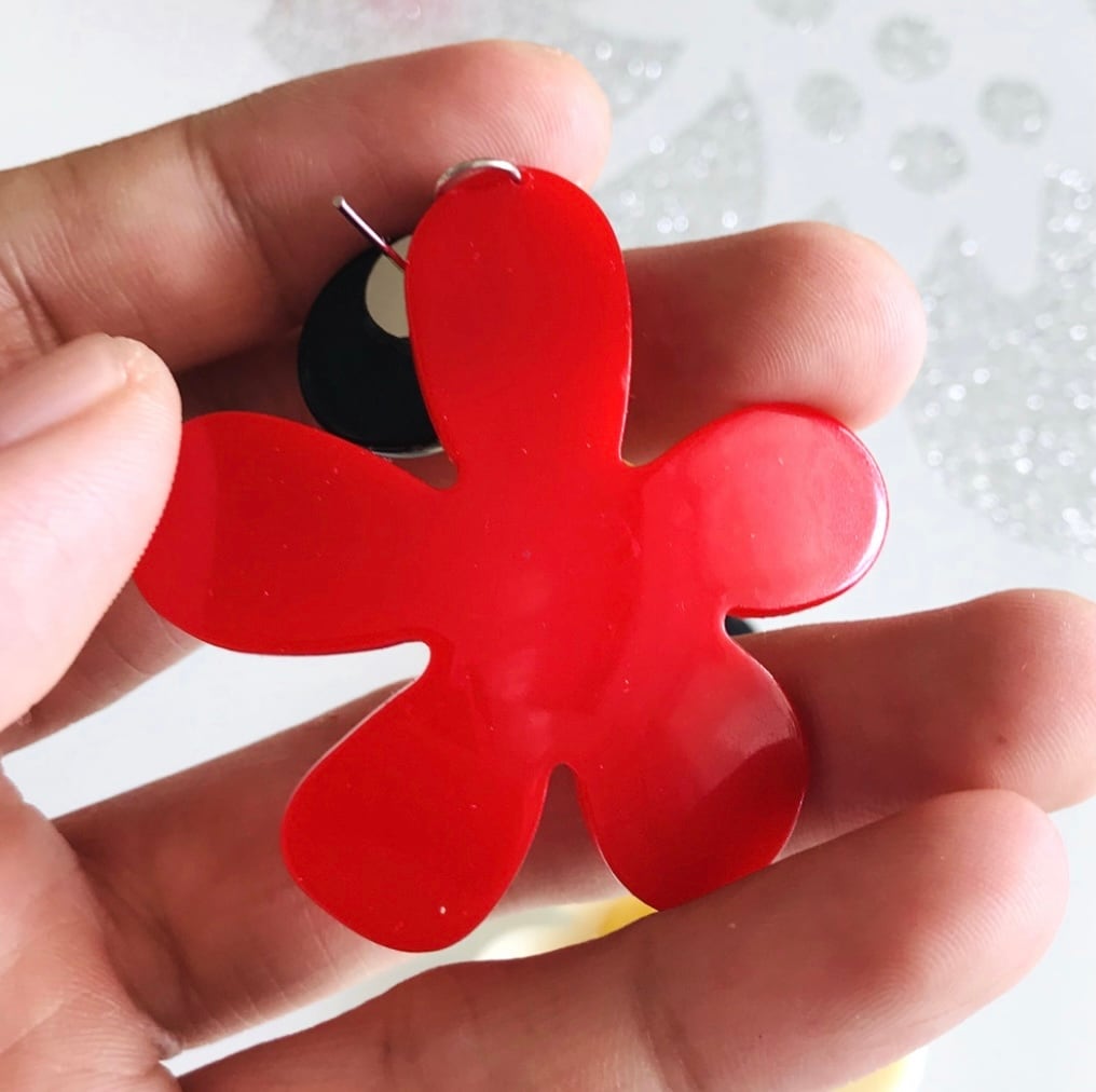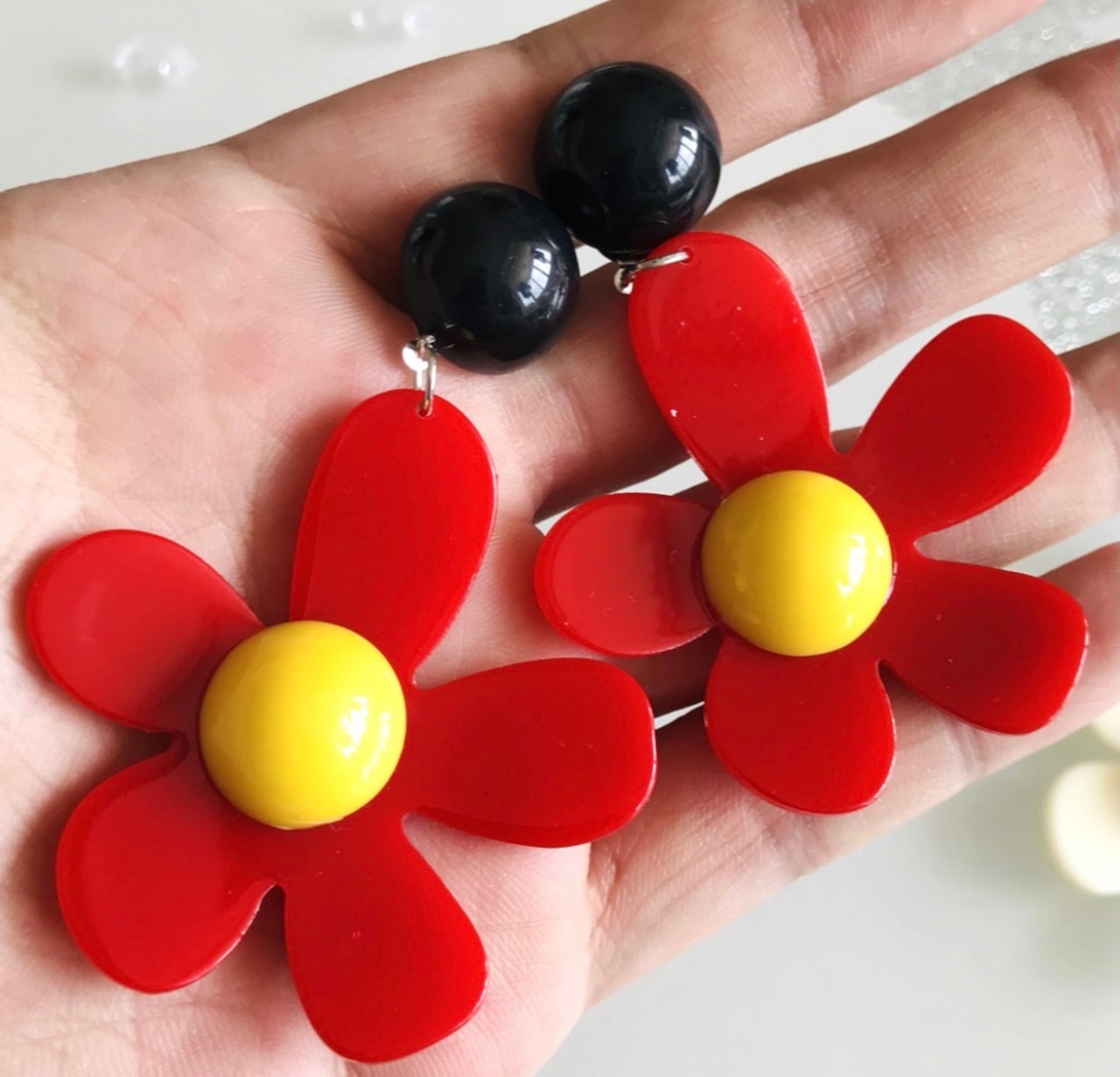 【即納】♡レトロな赤いお花ピアス♡フレンチレトロ 昭和レトロ