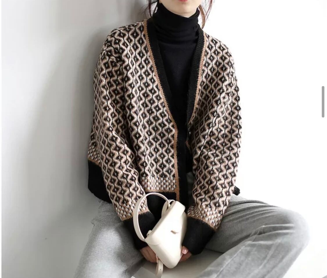 【即納】♡ニットの格子上品カーディガン♡スタイリッシュ 大人カジュアル 上品 セレブ