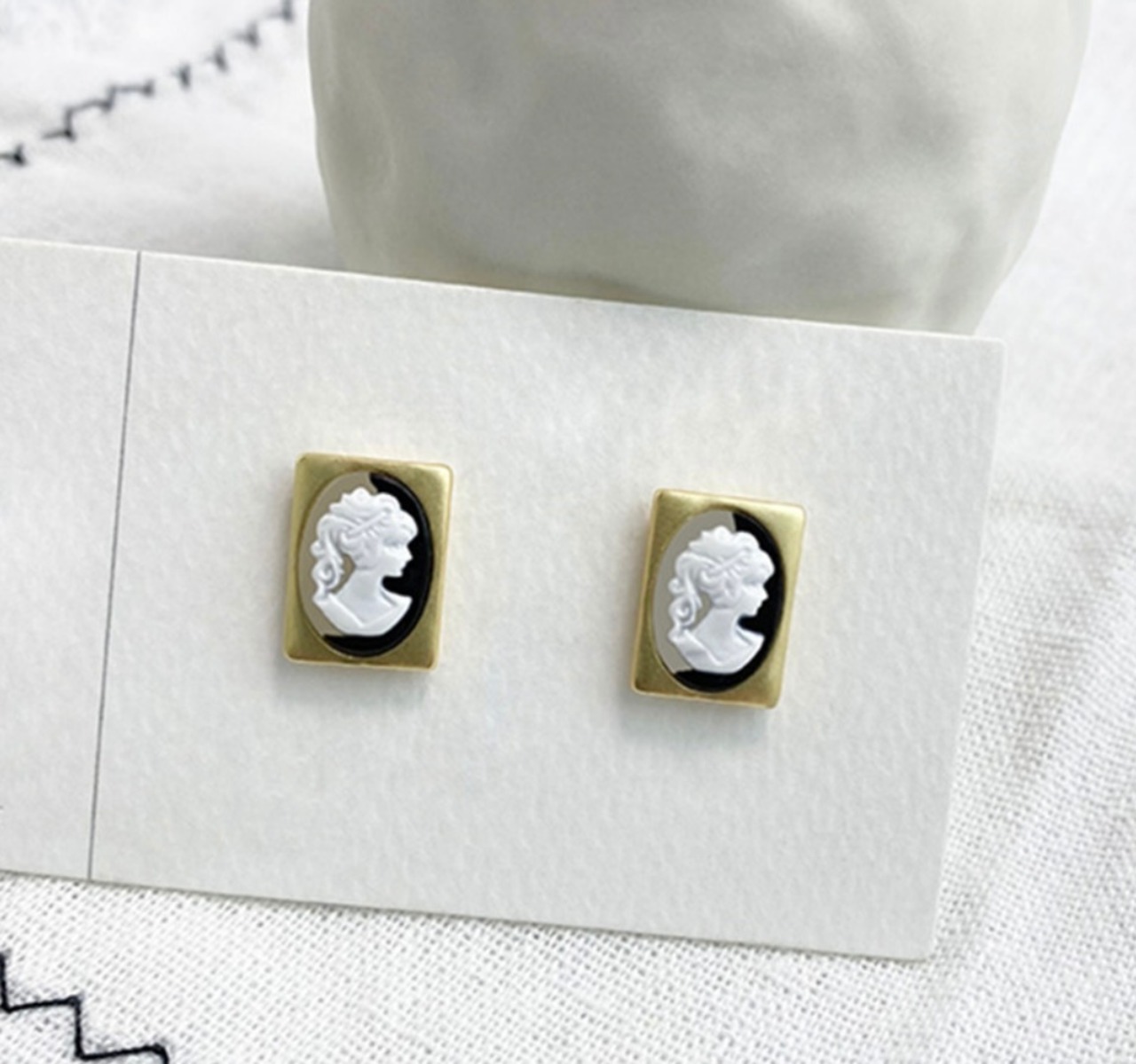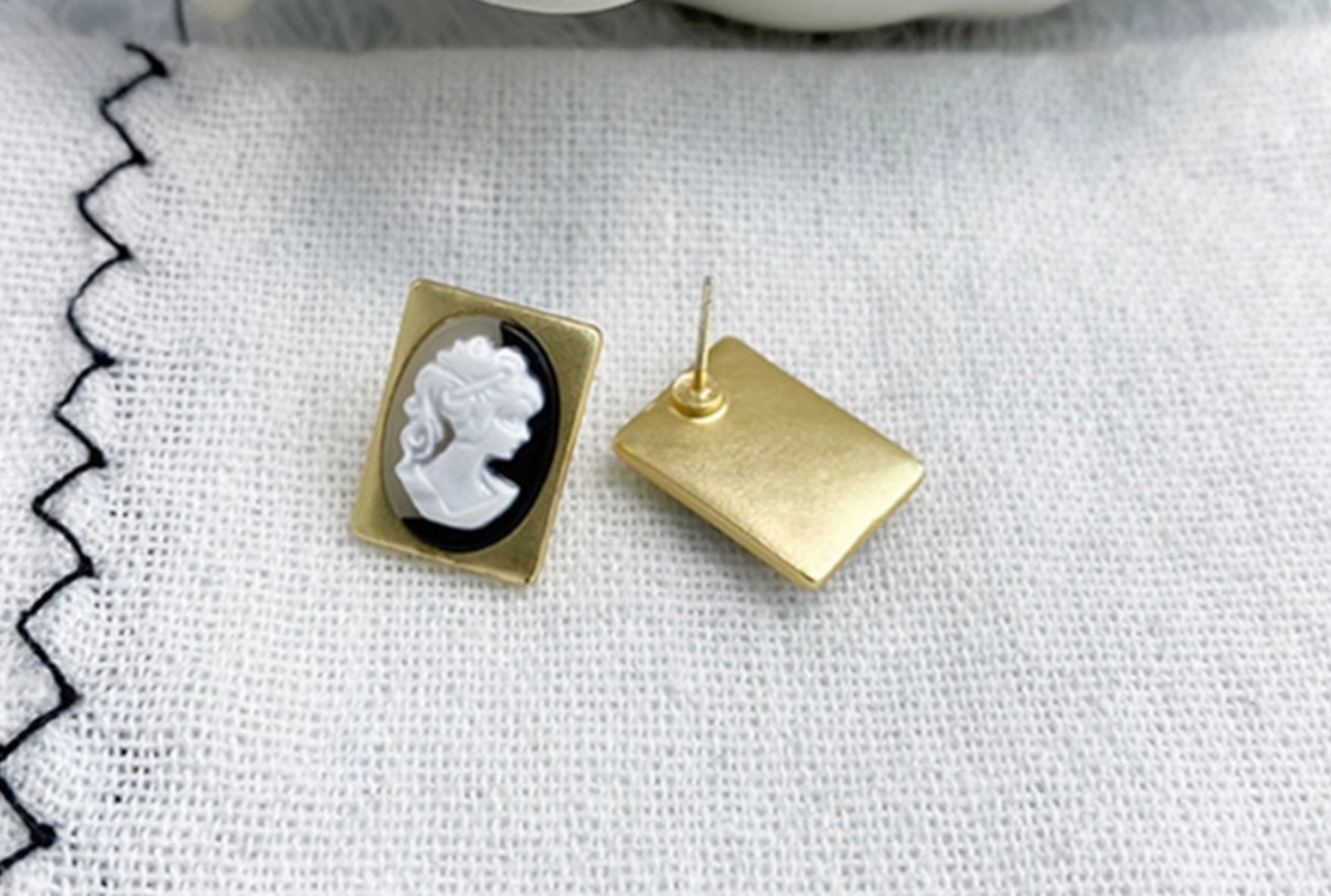 ゴールドのフレームにヨーロッパの貴婦人の装飾のなされたシンプルで上品なピアスになります♡