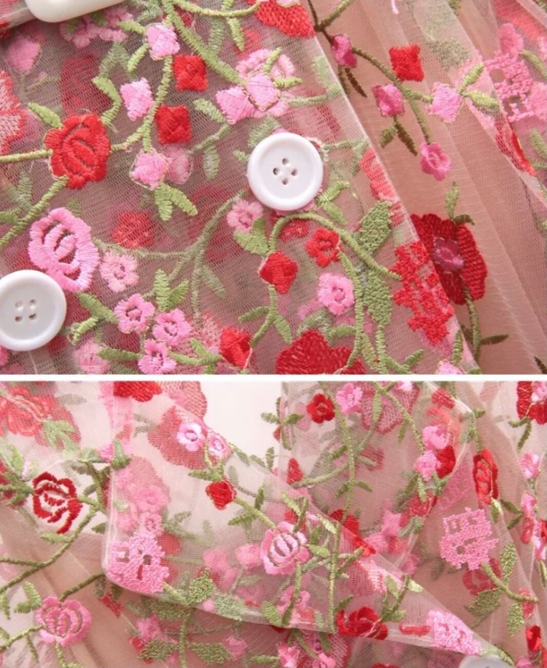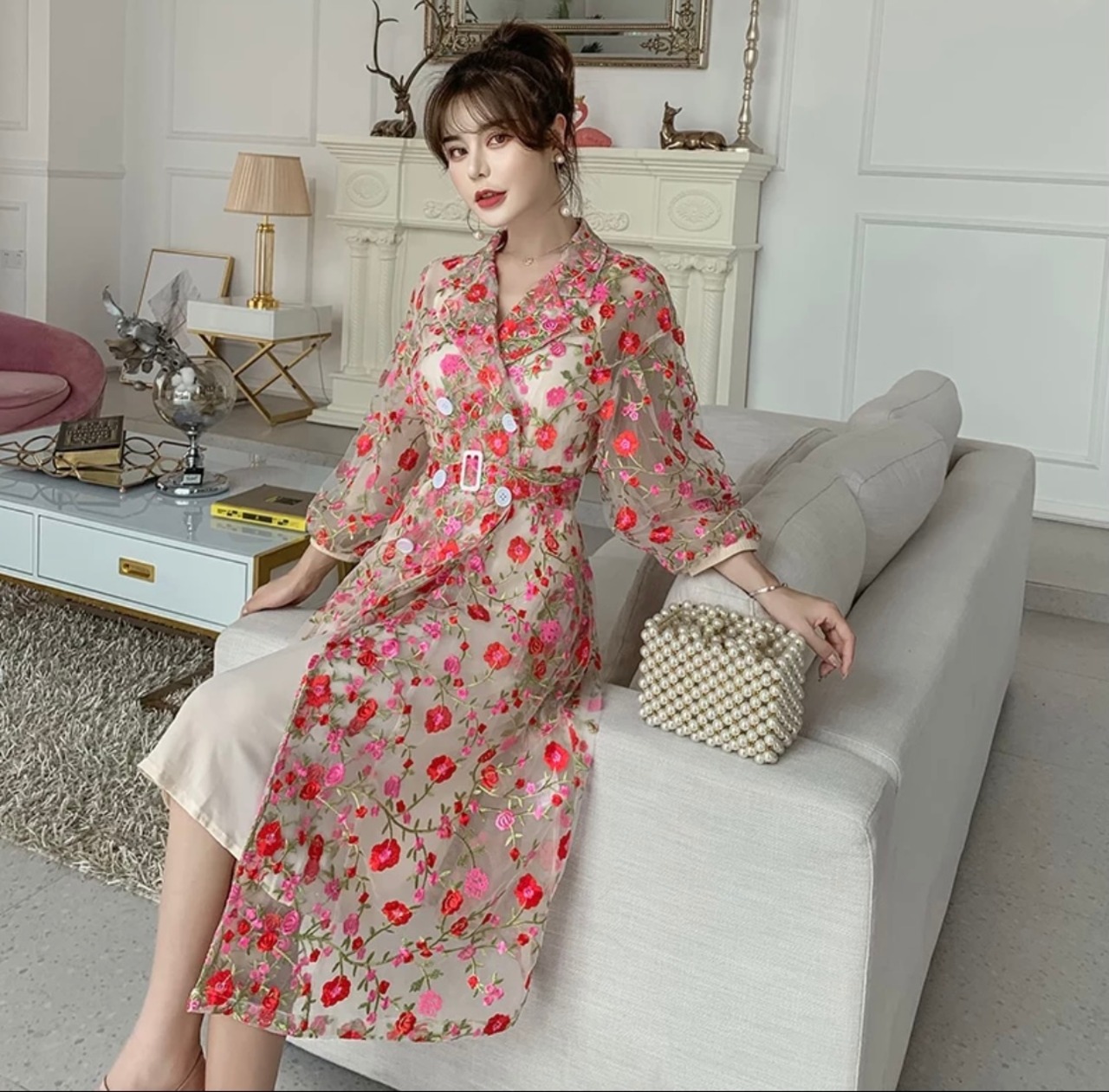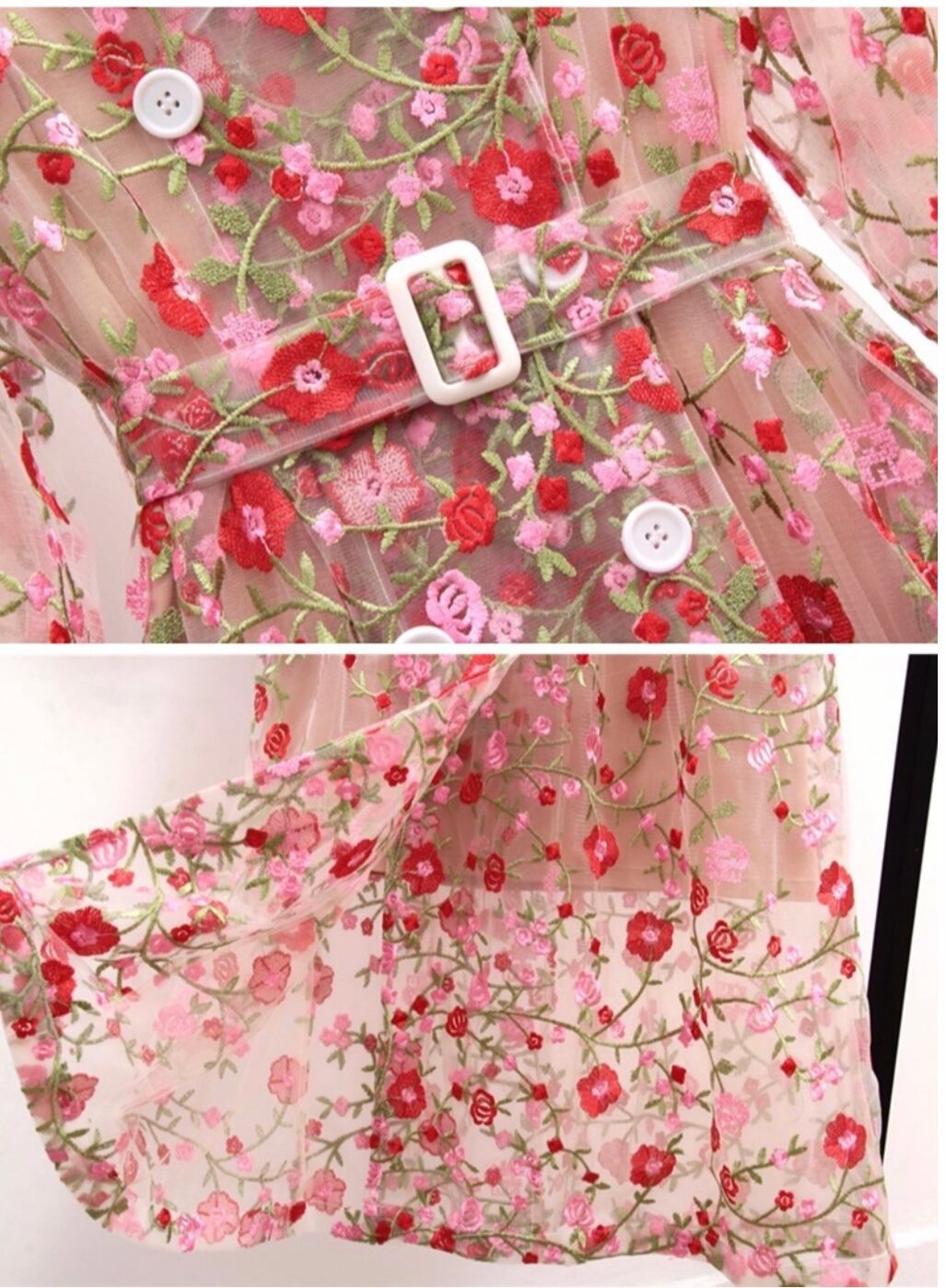 【即納】♡トレンチコート型のヴィンテージデザインお花刺繍ワンピース♡一枚あると便利 コーデ モード スタイリッシュ 森ガール