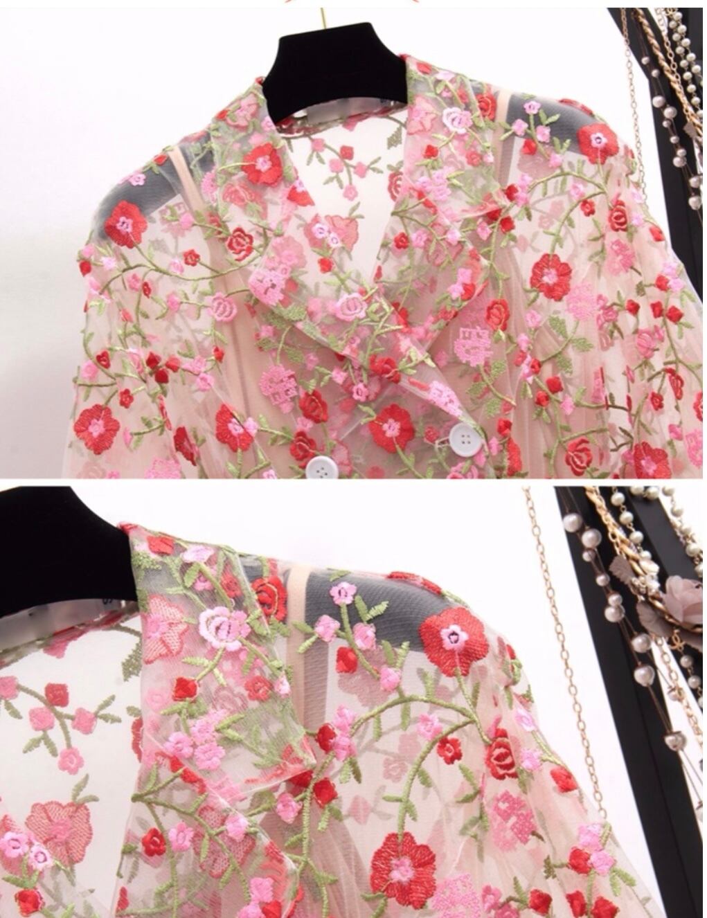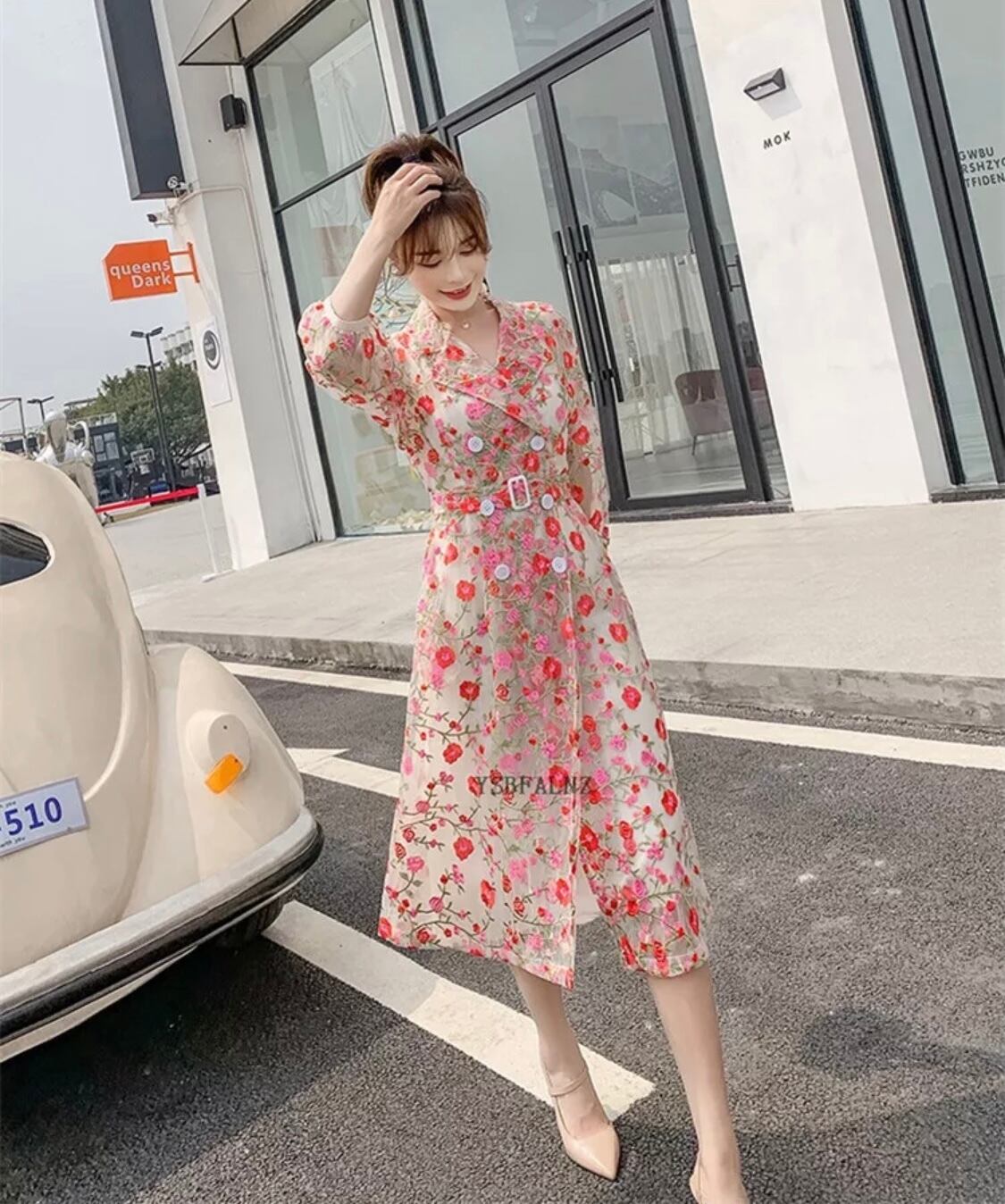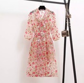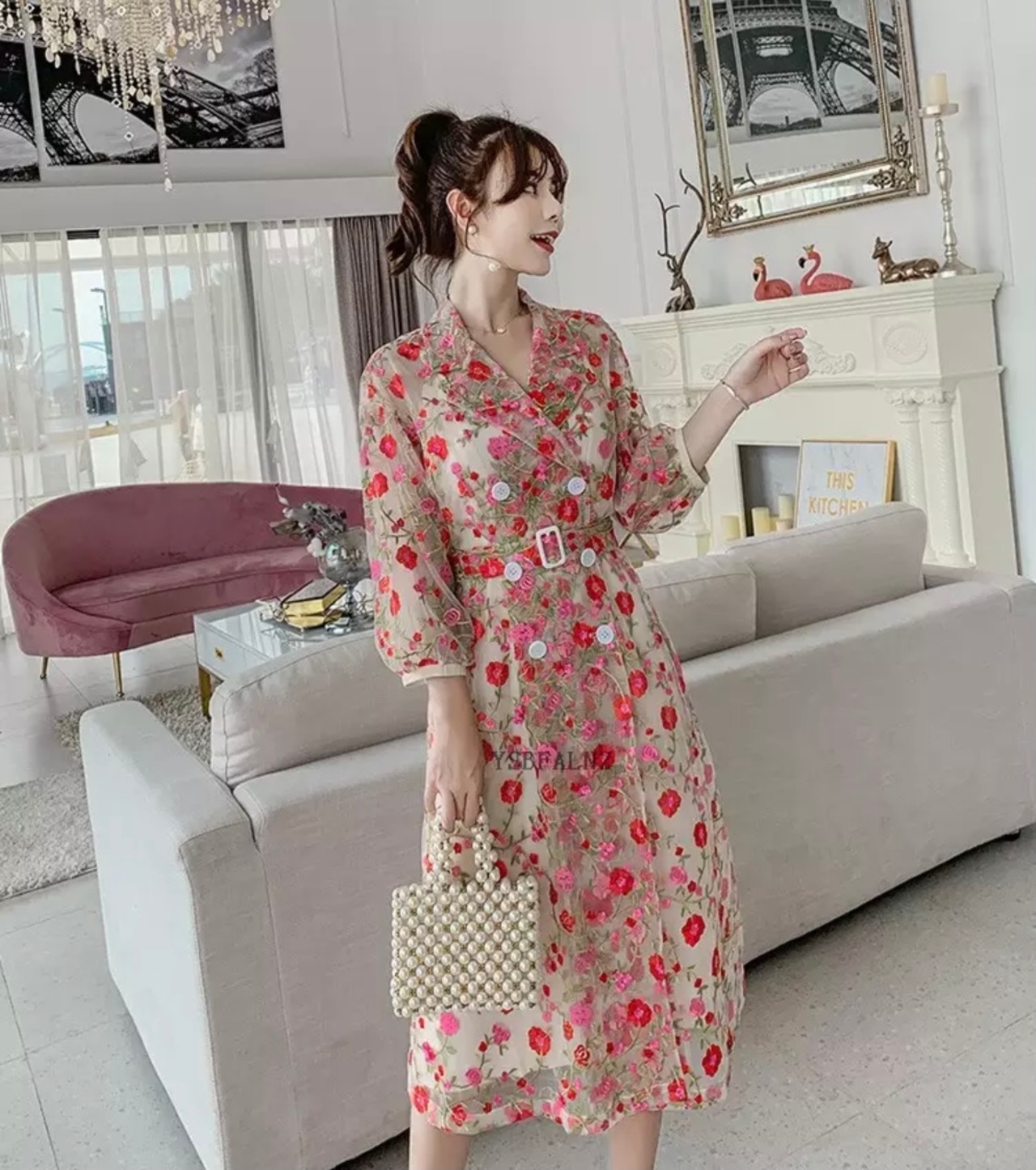 【即納】♡トレンチコート型のヴィンテージデザインお花刺繍ワンピース♡一枚あると便利 コーデ モード スタイリッシュ 森ガール