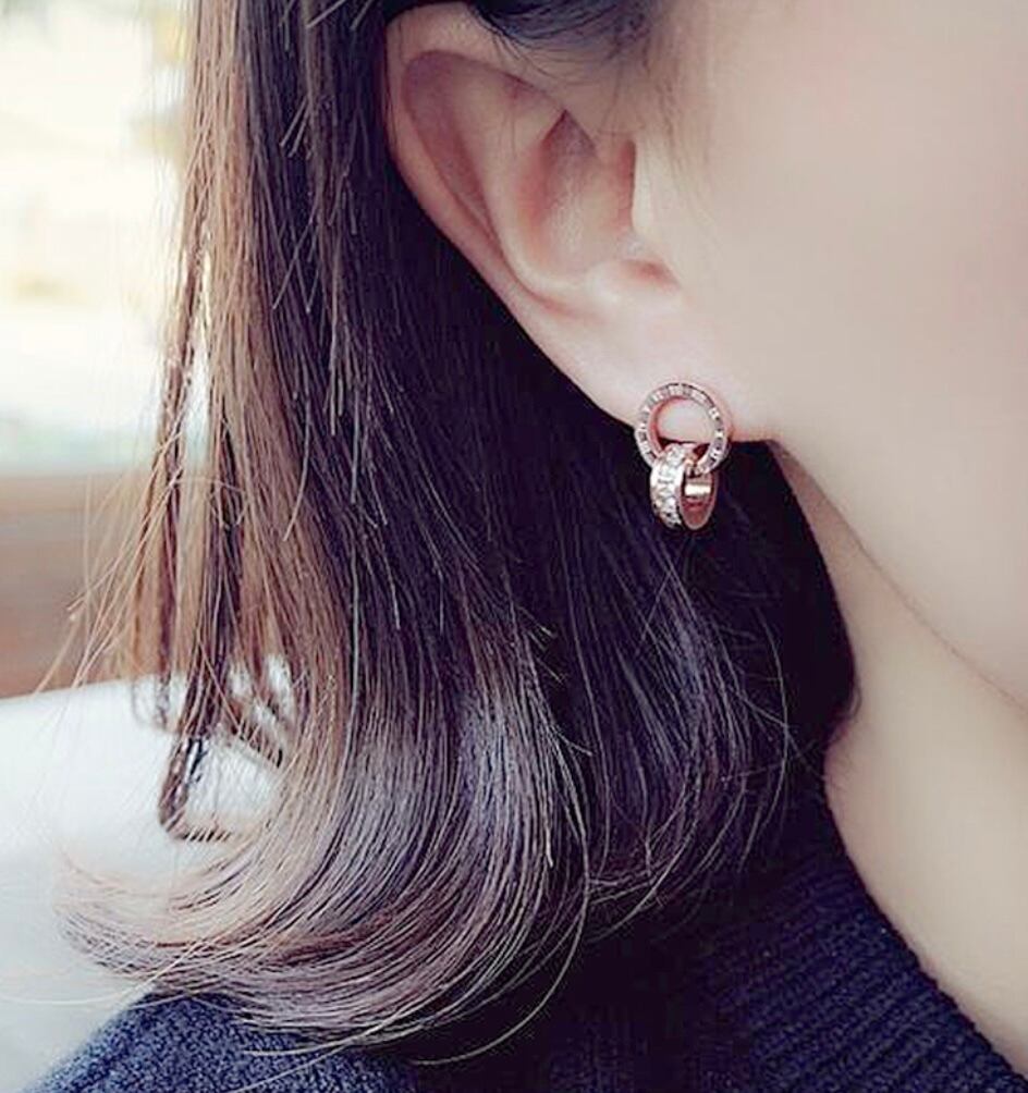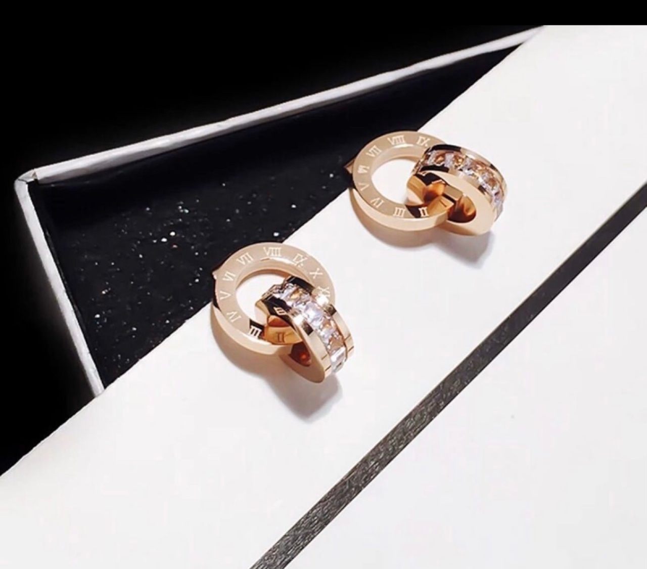 【即納】2カラー♡アトラスデザインの人口ダイヤピアス♡ローマン数字&リングデザイン♡プレゼント ギフト セレブ アトラスデザイン ゴールド ピンクゴールド