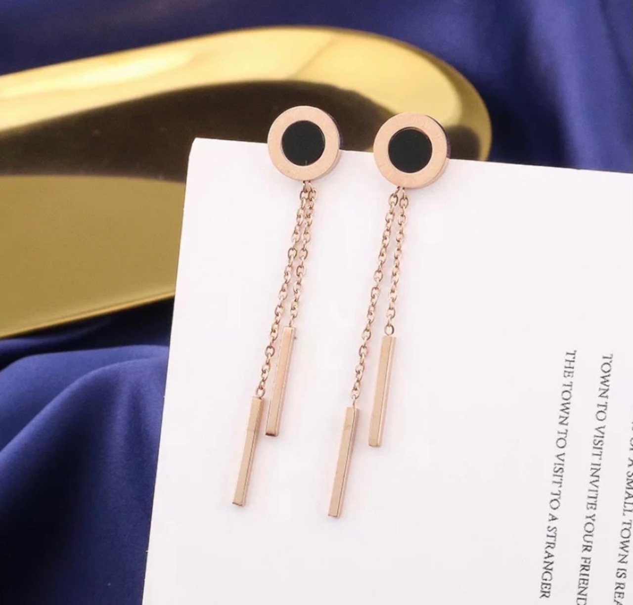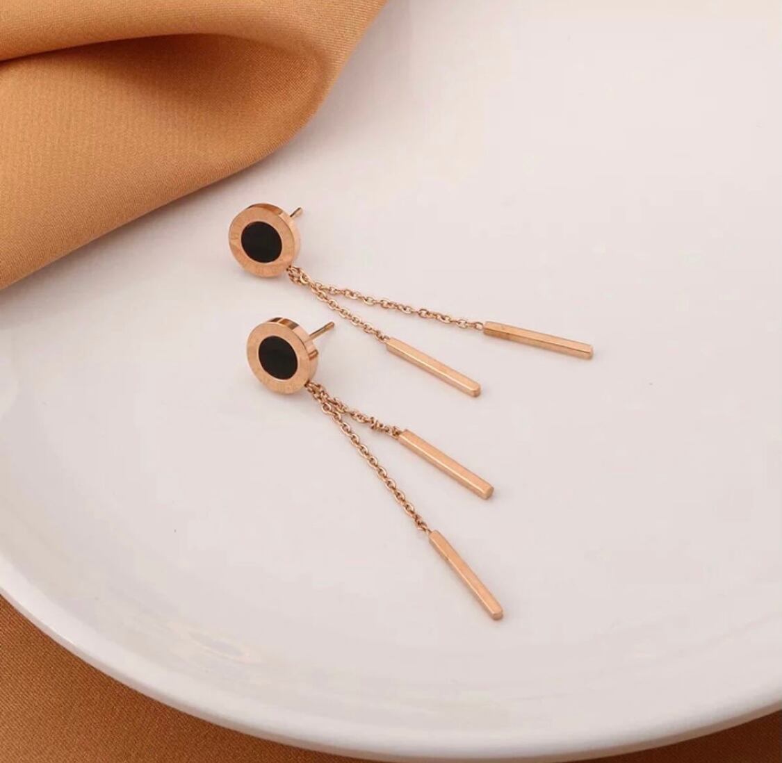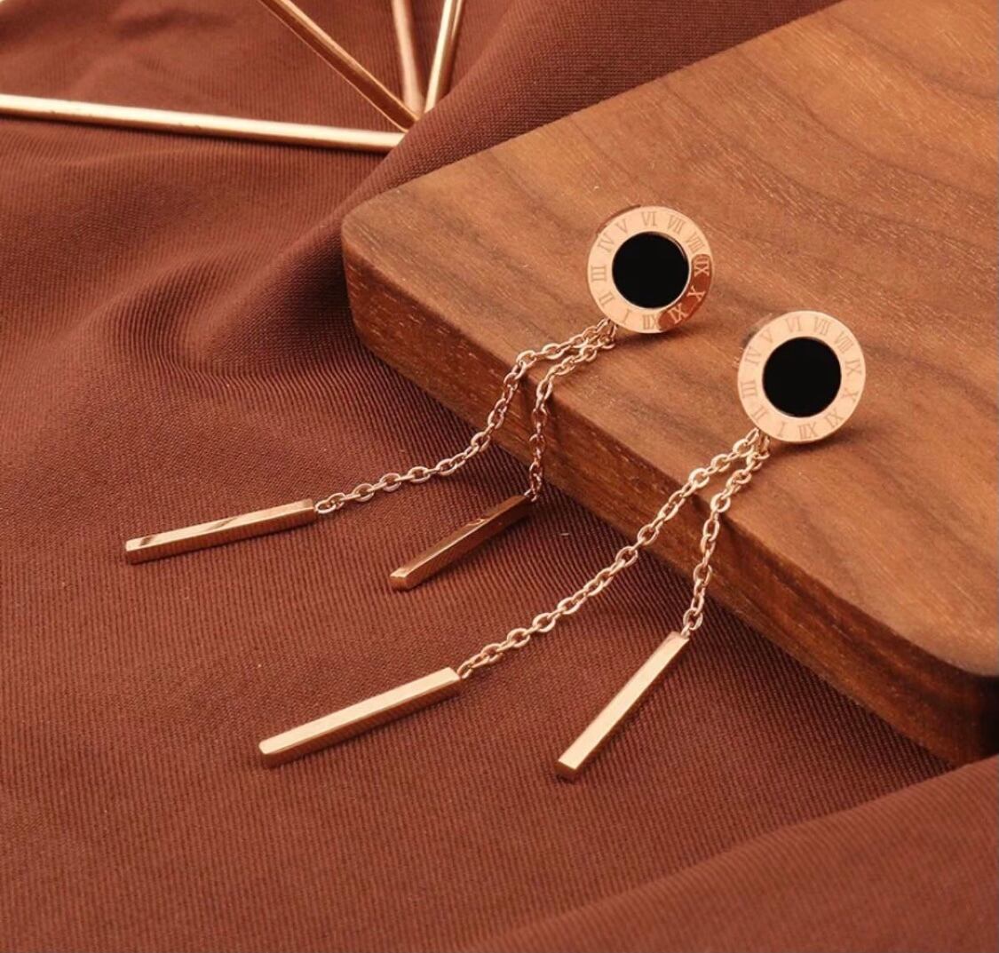 【即納】♡ピンクゴールドの上品なアトラスピアス ブラック♡ローマン数字&タッセル♡セレブ 日常使いに