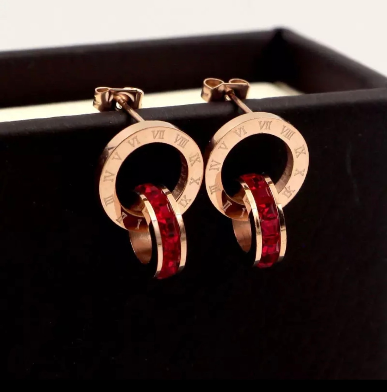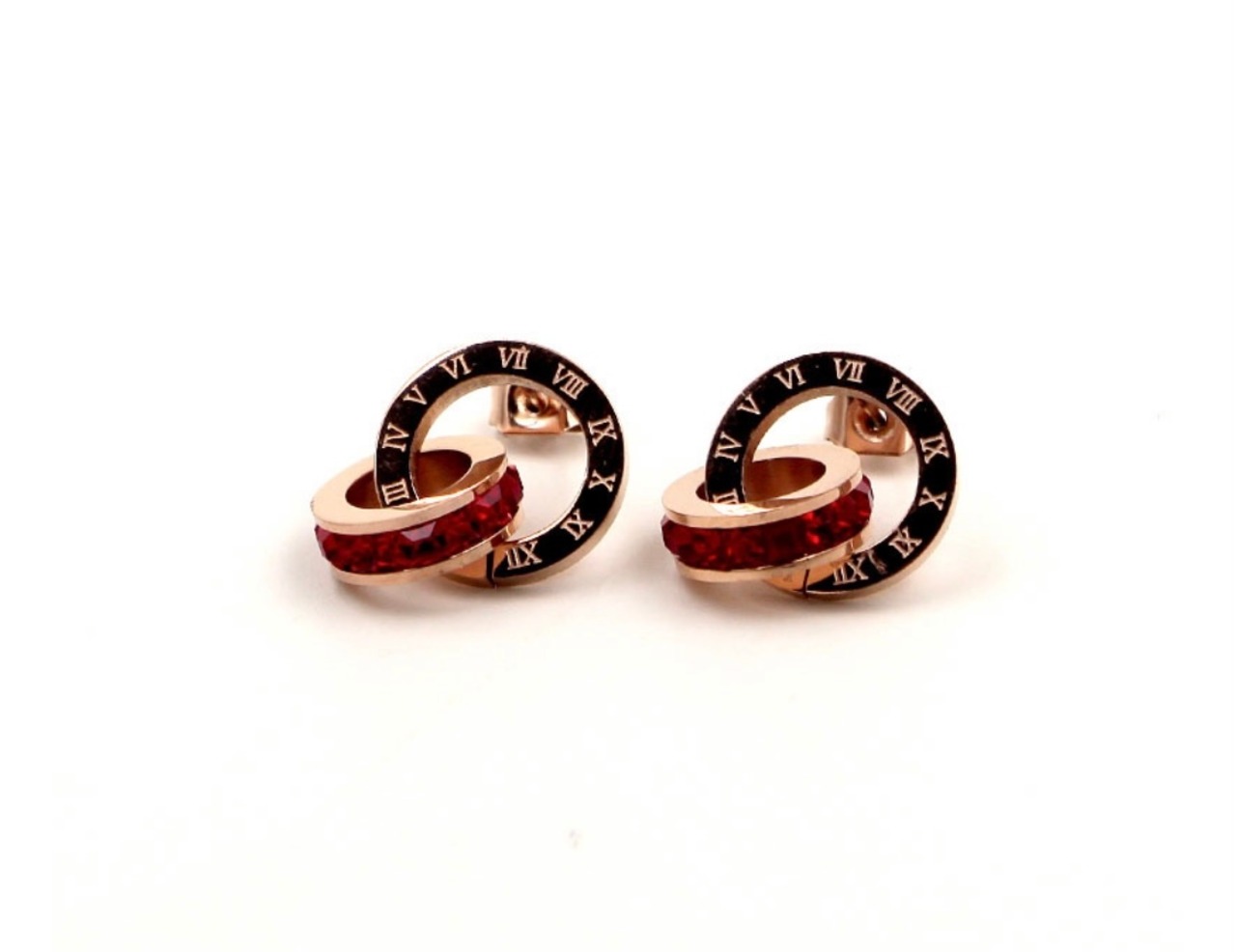 【即納】♡アトラスデザインの人口ルビーピアス♡ローマン数字&リングデザイン♡プレゼント ギフト セレブ アトラスデザイン ピンクゴールド
