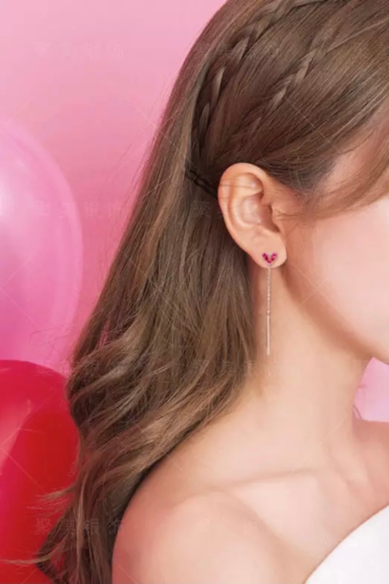 ピンクゴールドにラインストーンで彩られたハートに華奢なチェーンのぶら下がった可愛いイヤリングになります♡