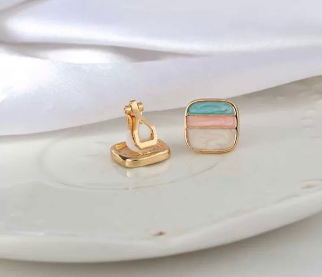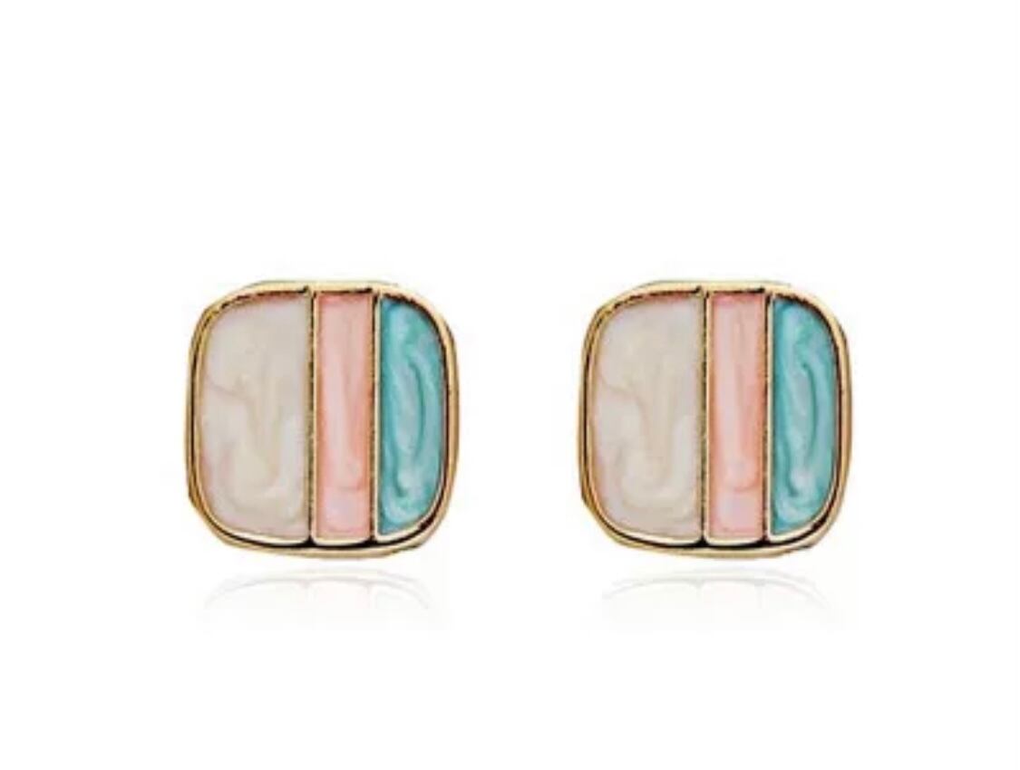 ゴールドのスクエア縁取りにストライプの3カラーが彩られた上品なイヤリングになります♡