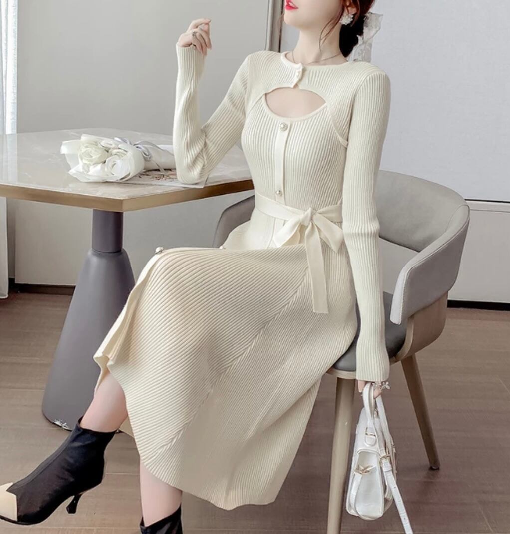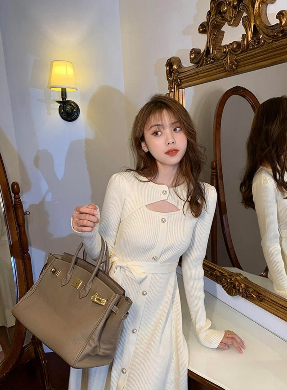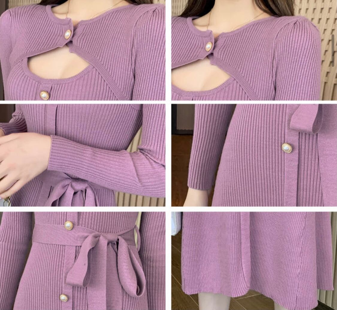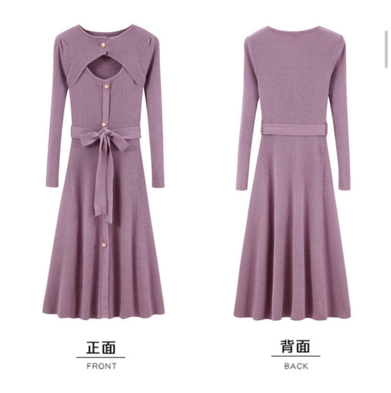 送料無料【即納】♡お上品なセクシーニット大人可愛い愛されワンピース♡ラベンダー ホワイト OL お呼ばれ 二次会 結婚式 お茶会